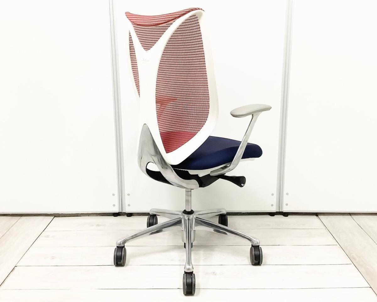 【在庫入替セール】【人間工学から生まれた最先端のワーキングチェア!】■オカムラ サブリナチェア 可動肘付 背:レッド / 座:ダークブルー ■流れるような美しいフォルム!姿勢に心地よくフィット!【K12】