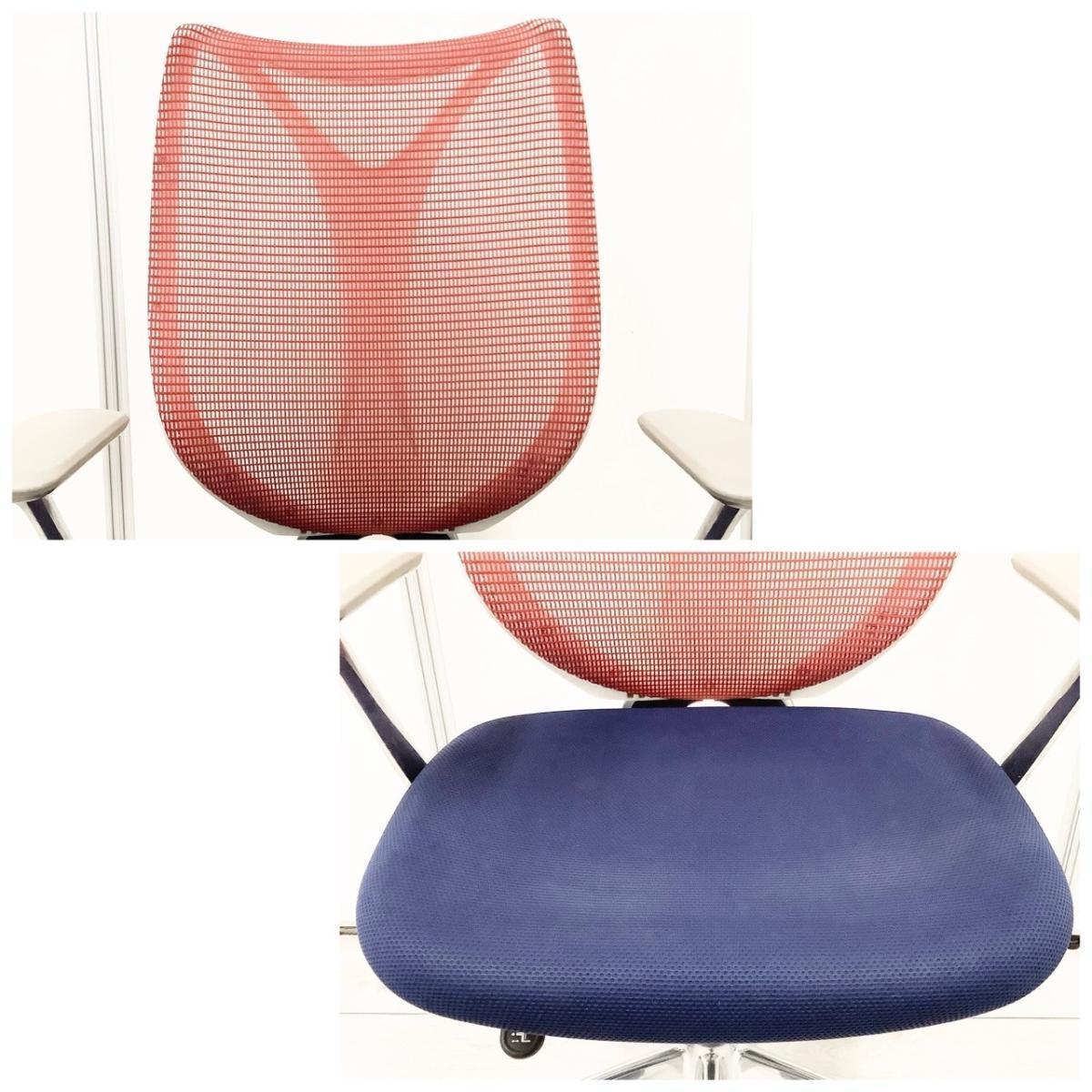 【来店限定キャンペーン】【在庫入替セール品】【人間工学から生まれた最先端のワーキングチェア!】■オカムラ サブリナチェア 可動肘付 背:レッド / 座:ダークブルー ■流れるような美しいフォルム!姿勢に心地よくフィット!【弊社使用欄:A00994649 K】