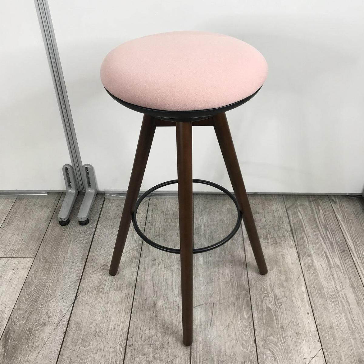 ピンクカラーに木製の脚が温かみのあるデザインのカウンターチェアになります!