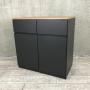 ブラック本体と木目ナチュラル天板の組み合わせがオシャレな収納キャビネットです。