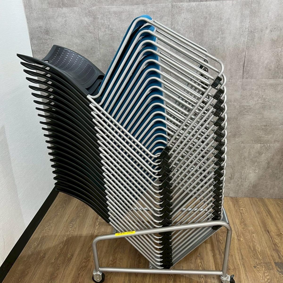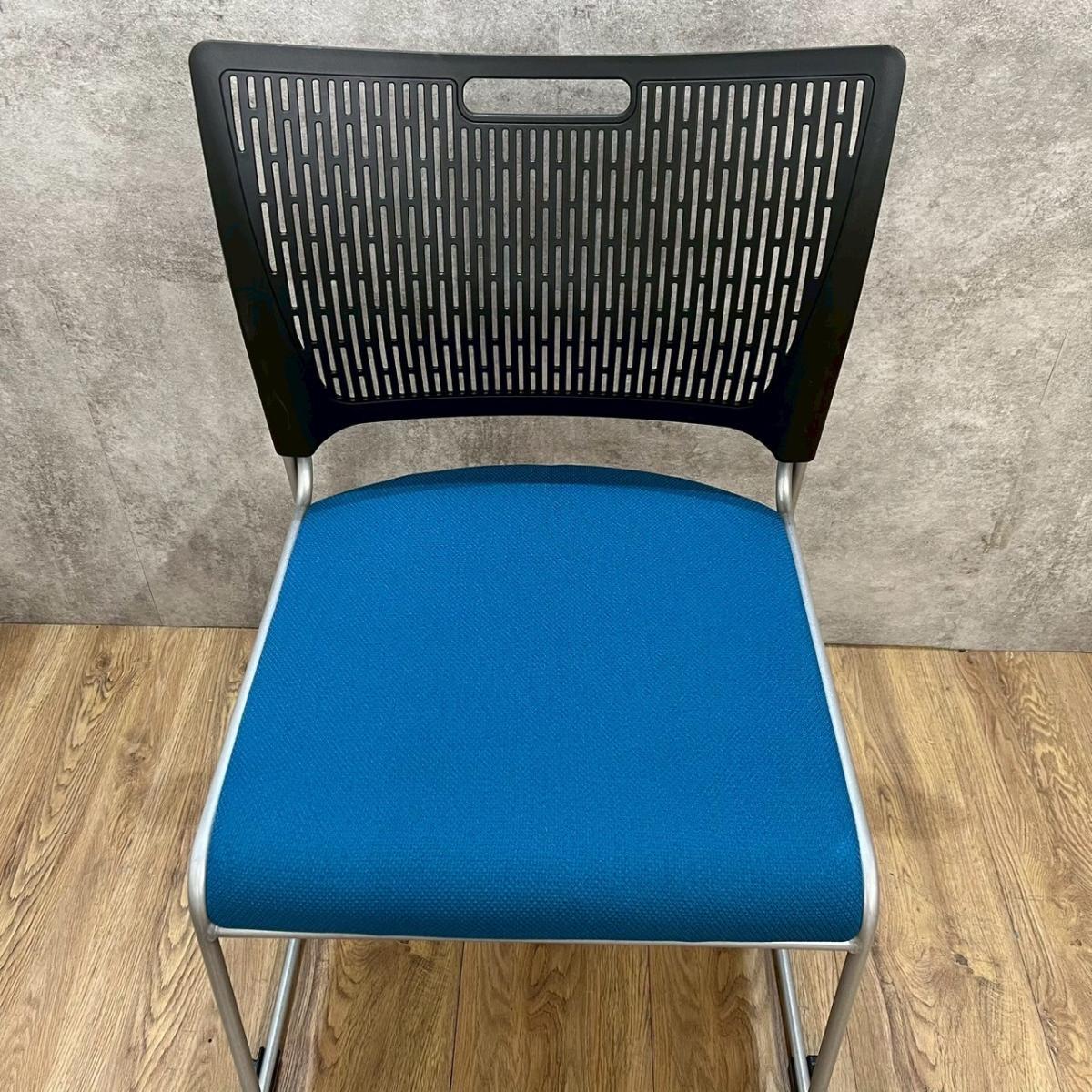 【重ねて収納可能!さわやかなカラーとシンプルデザイン!】■オカムラ製 レーテ スタッキングチェア ミーティングチェア ■キャスター付き ■座面ブルー×背面ホワイト【2412】弊社使用欄【A00990049】