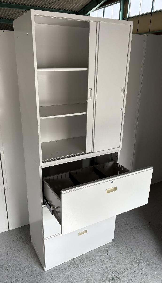 【引き違い+引き出しの組み合わせ 】◆イトーキ/シンライン 引き戸 3段ラテラル 本棚 収納 家具 リユース 九州最大級《オフィスバスターズ福岡博多店は、福岡を拠点として、日本全国へ中古オフィス用品・オフィス家具を提供しております》