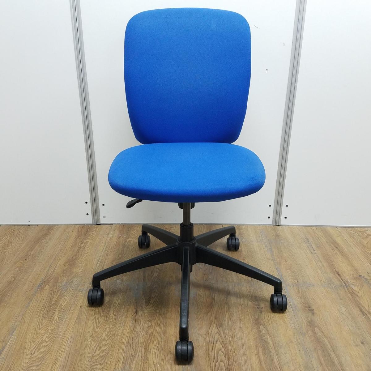 【訳あり品:擦れ/破れあり】スチールケース製 アプトシリーズ ブルー オフィスの執務室や事務所などにおすすめ! 座り心地に配慮した厚めのクッションが好評! 肘無しローバックチェア!!※保障対象外品になります。- 京都東寺店