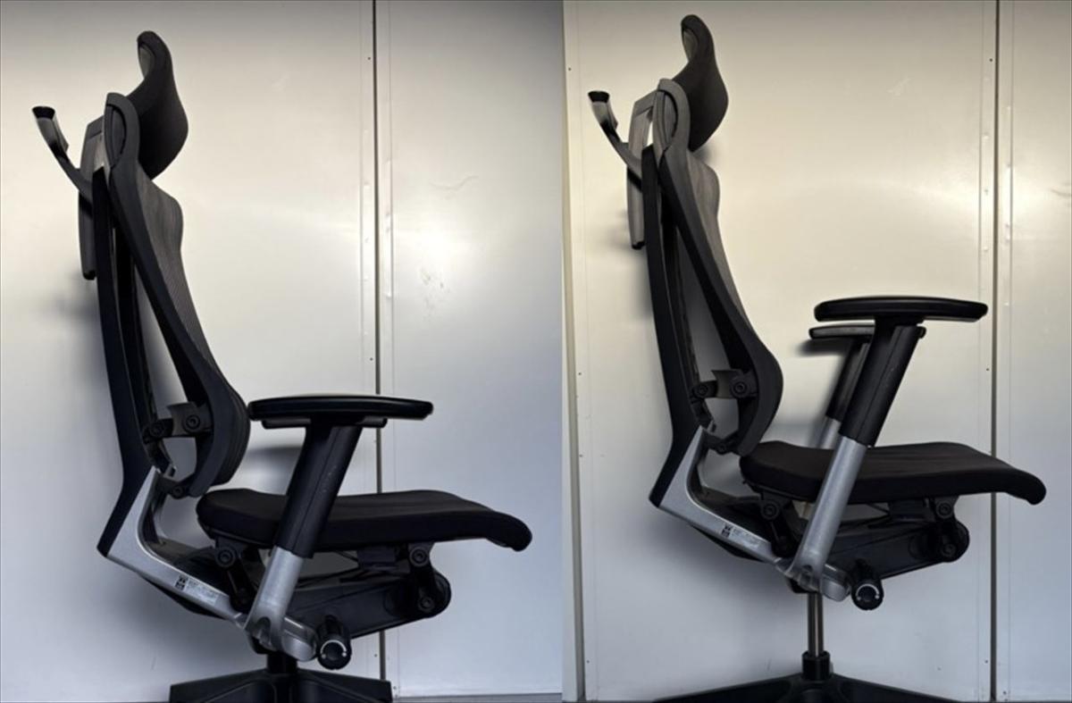 一番の特長は、着座時にチェアがピタっと体にフィットしてくれることです。 人がチェアの座り心地を調節するのではなく、チェアが人に合わせて動くのです!着座時に座面が沈み込みながら後方へスライドし、それと同時に背もたれの腰部分が前にせり出し、「ずっと座っていたくなる」と言われるほどの座り心地に調節してくれます。それを実現しているのが、A.L.S(アクティブ・ランバー・サポート)機構とP.S.S(パッシブ・スライド・シート)機構です。 さらに、背もたれにかかる体圧を徹底的に分析して作られた絶妙なカーブが、常に腰をサポートしつつ背骨のラインに沿ってくれます。