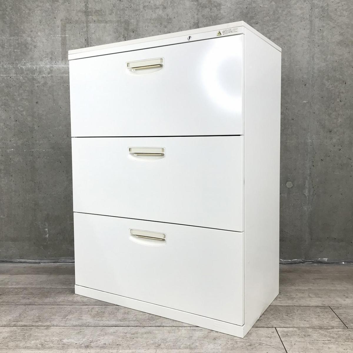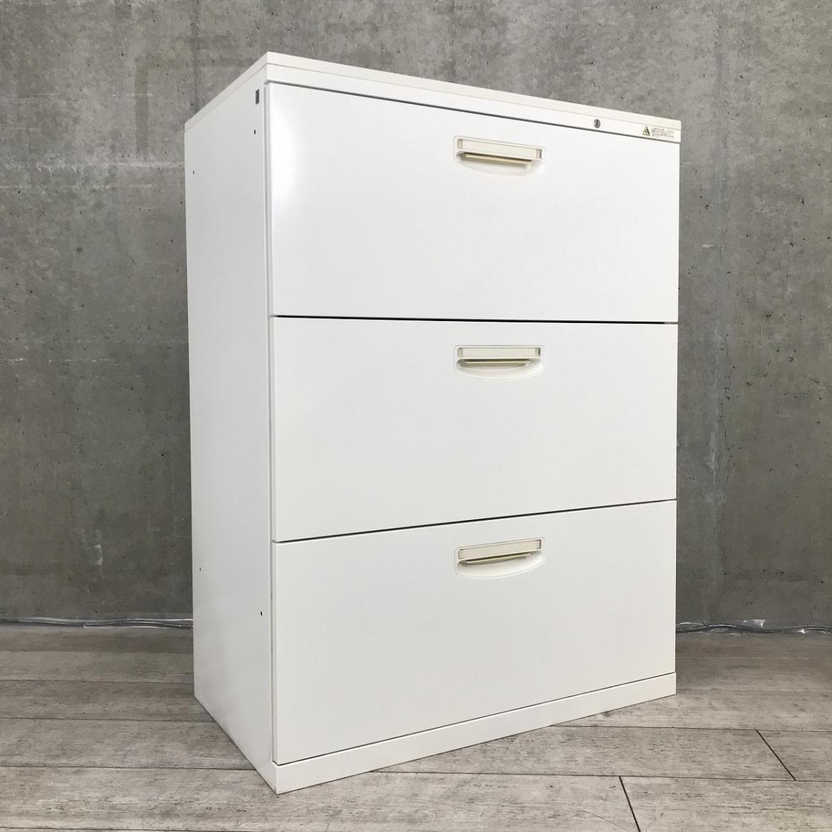 【A00981630】オカムラ 3段ラテラル/引き出し キャビネット ホワイト SA デュオライン【在庫入替セール】【IB】