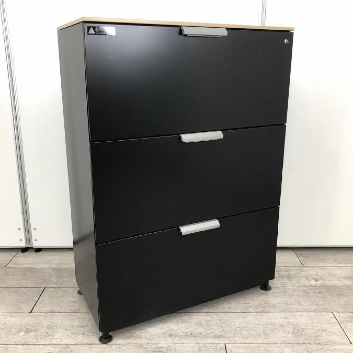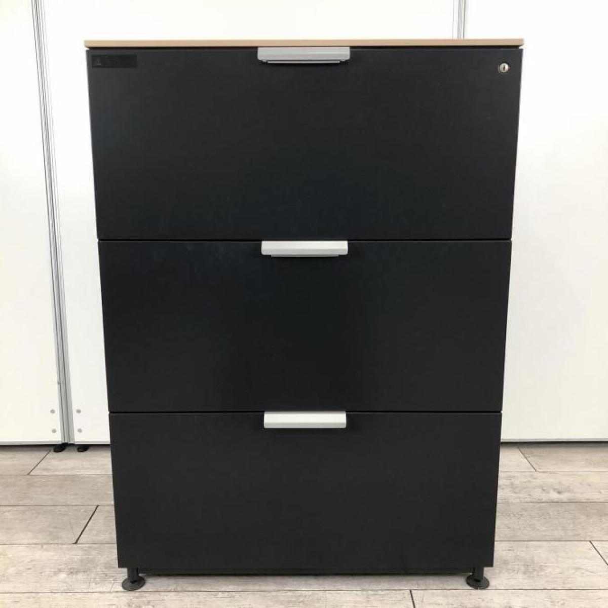 【入荷の少ないアルツァータシリーズ!シックなブラックカラーで入荷!!】■オカムラ(okamura) アルツァータシリーズ 3段ラテラル書庫 ■本体ブラック 天板ナチュラル ■W800×D400㎜ ■シリンダー錠【弊社使用欄:A00992992】【SN】- 在庫数
