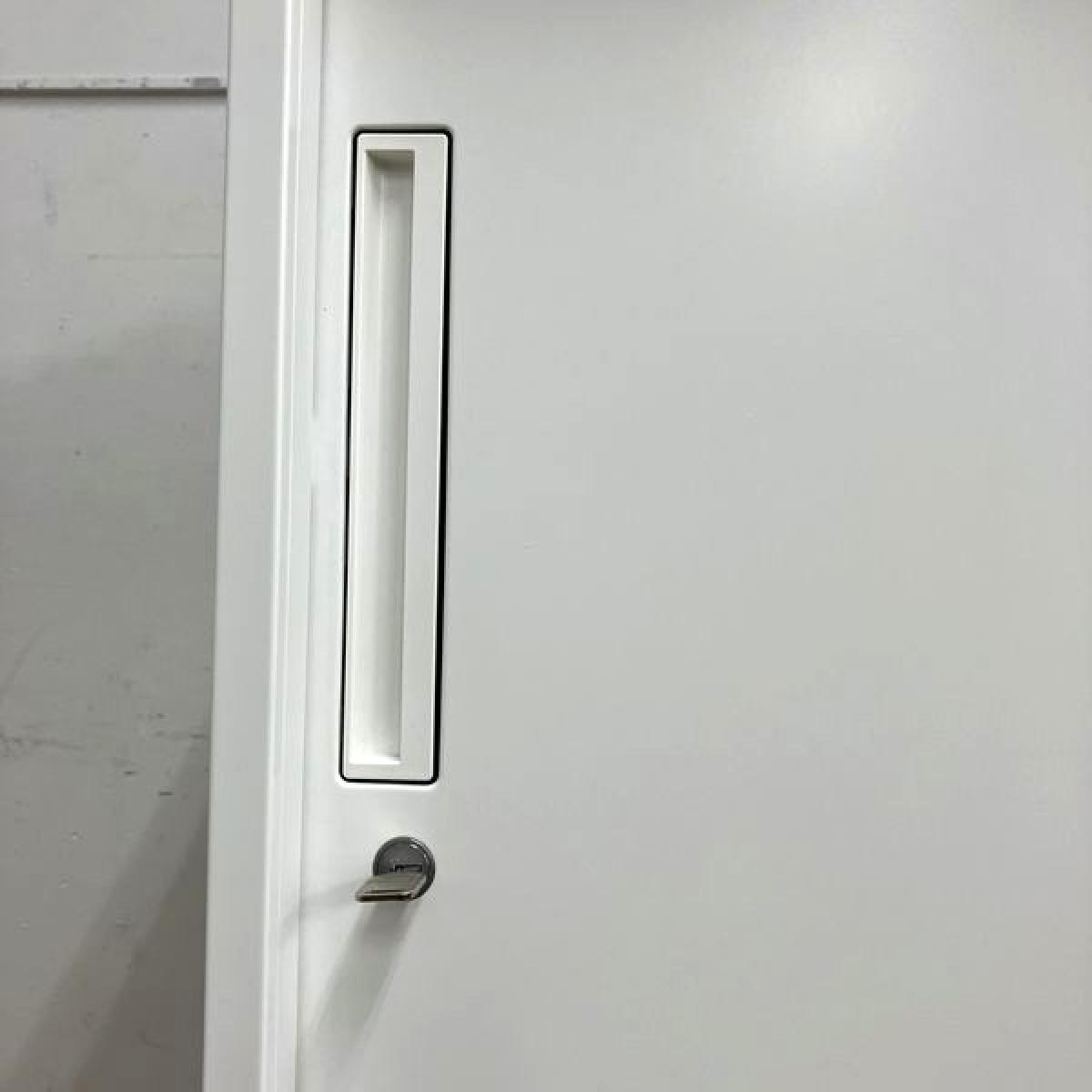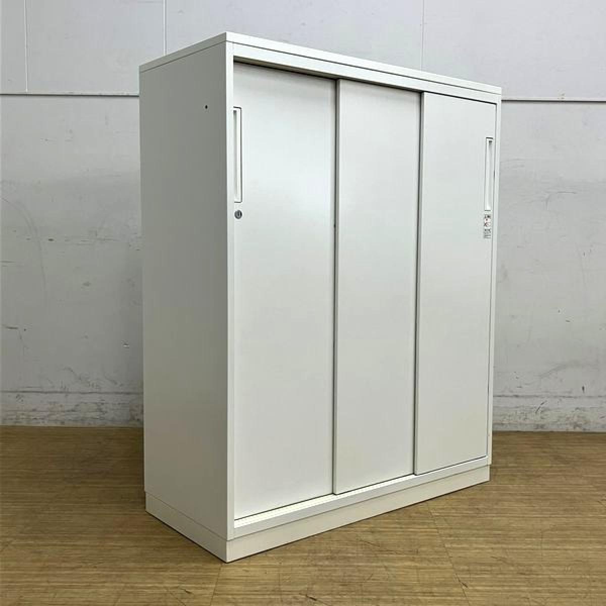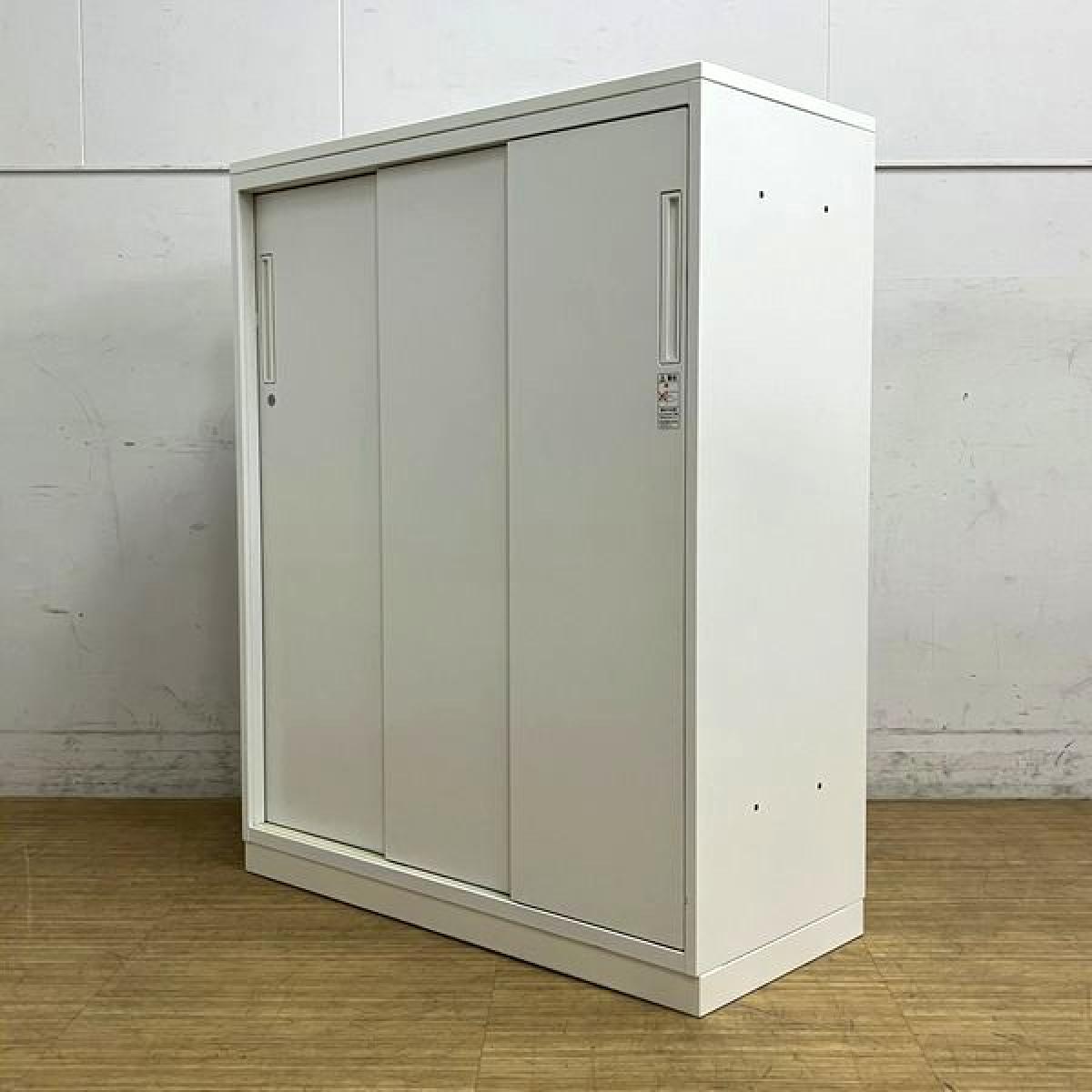 【在庫入替セール】3枚引き戸書庫 コクヨ エディア 鍵付き(シリンダー錠) 天板付き 清潔感のあるホワイトキャビネット オフィスの導線をより確保出来る奥行400mmサイズ ※レール部分に日焼けあり- 名古屋千種店