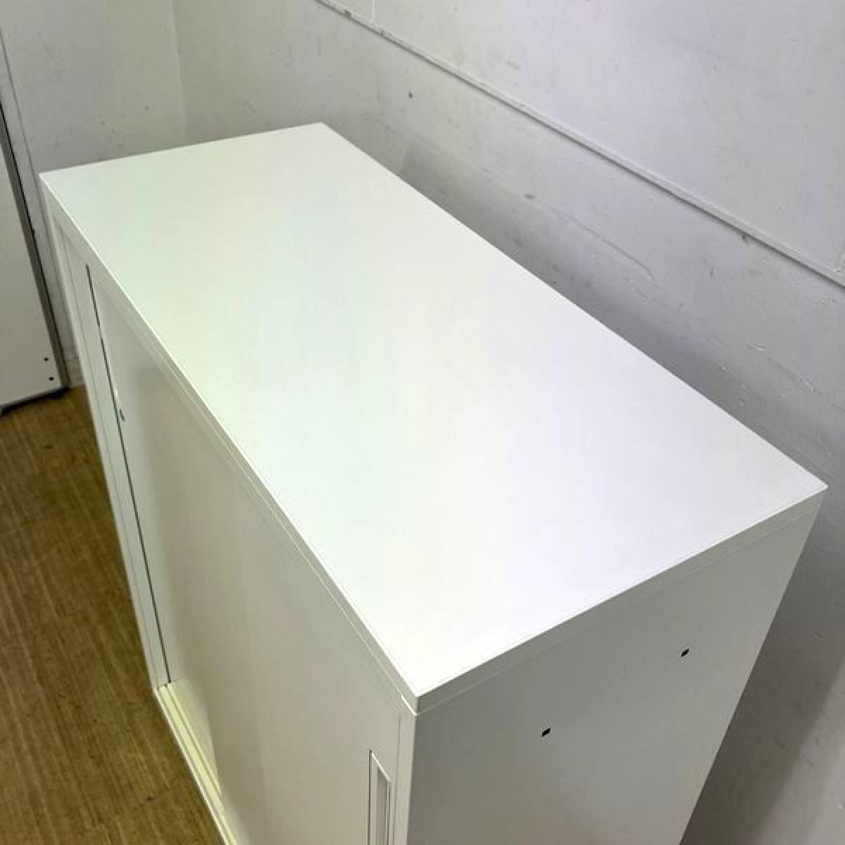 【スライド引き戸だから開閉スペースに困らない!】■コクヨ(KOKUYO)製 エディア(EDIA)シリーズ 2枚引き違い書庫 ローキャビネット シリンダー錠 天板付き ベース付き ホワイト シリンダー錠 収納 中古家具 格安 福岡 オフィス家具 九州最大級《オフィスバスターズ福岡博多店は、福岡を拠点として、日本全国へ中古オフィス用品・オフィス家具を提供しております》