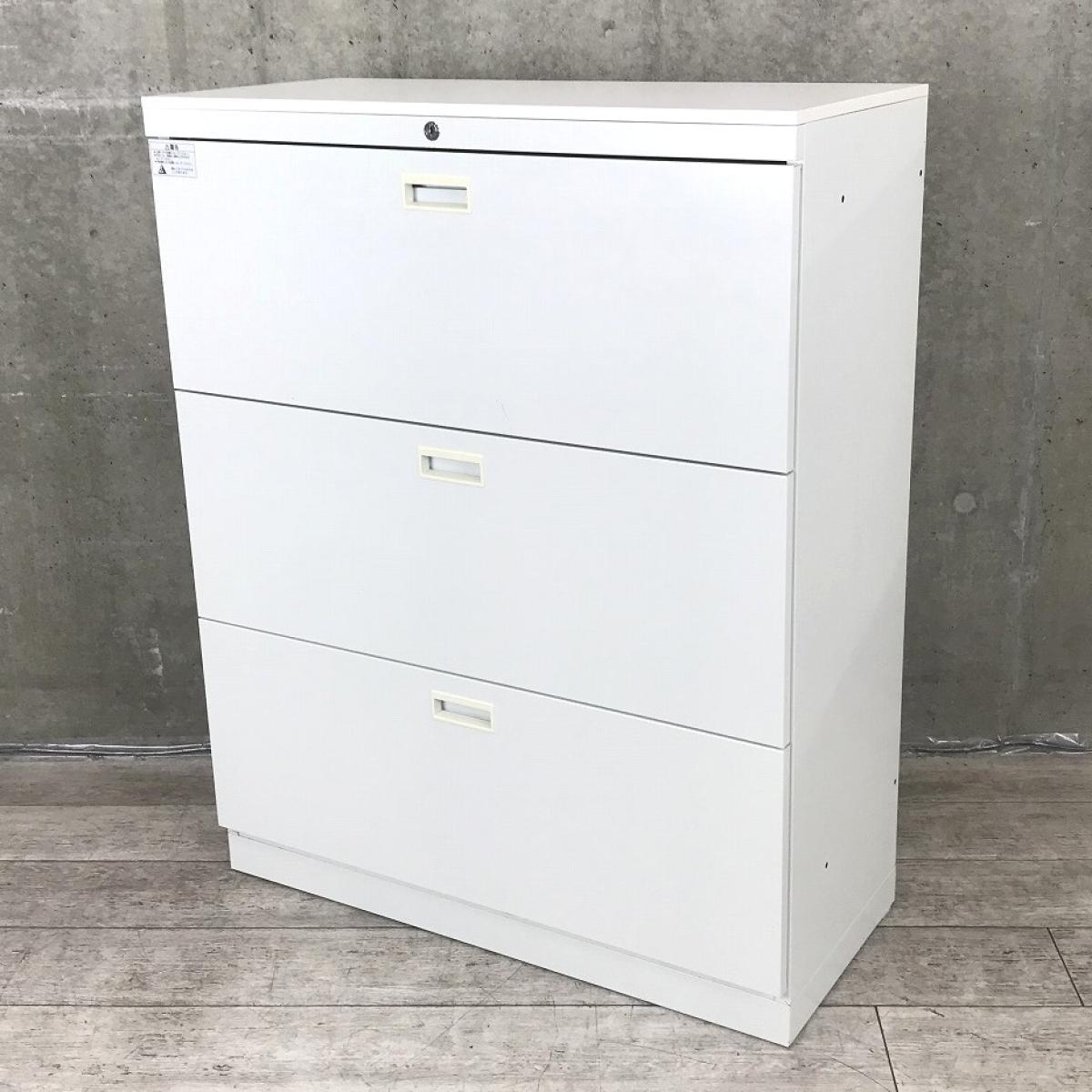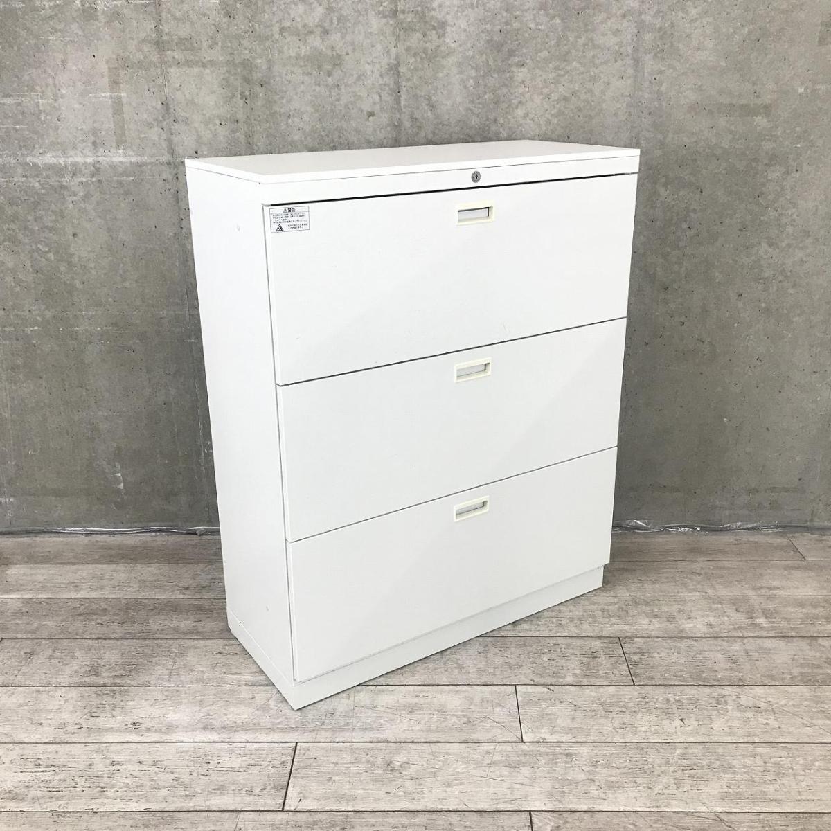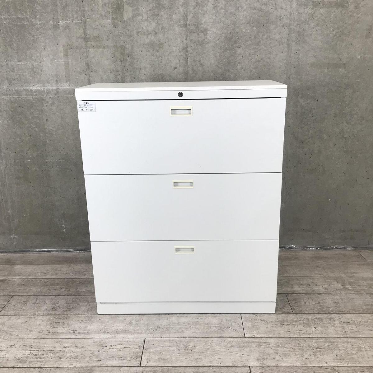 【ファイル整理に便利な引出し型キャビネット!】■KUROGANE(クロガネ) 3段ラテラル書庫(D400mm) 天板付き ホワイト ※引出面擦れありのためお安く!- 川崎店