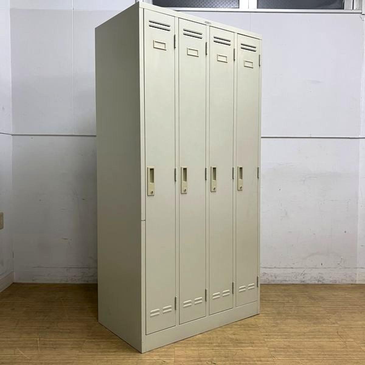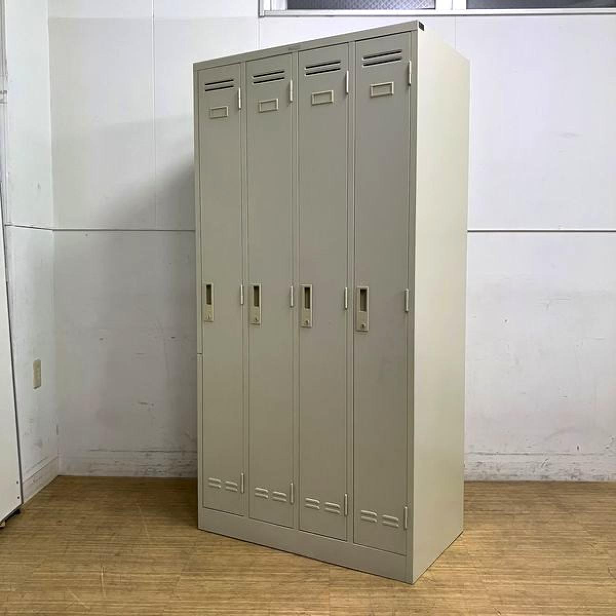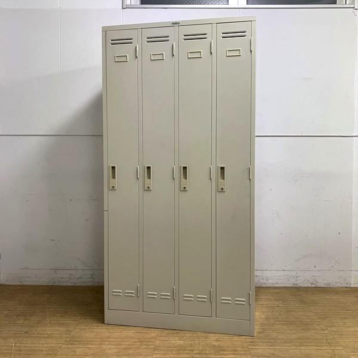 【在庫入替セール】【2台入荷】ライオン 4人用更衣ロッカー ニューグレー シリンダー錠 鍵付き ※取っ手に日焼けがあります- 名古屋千種店