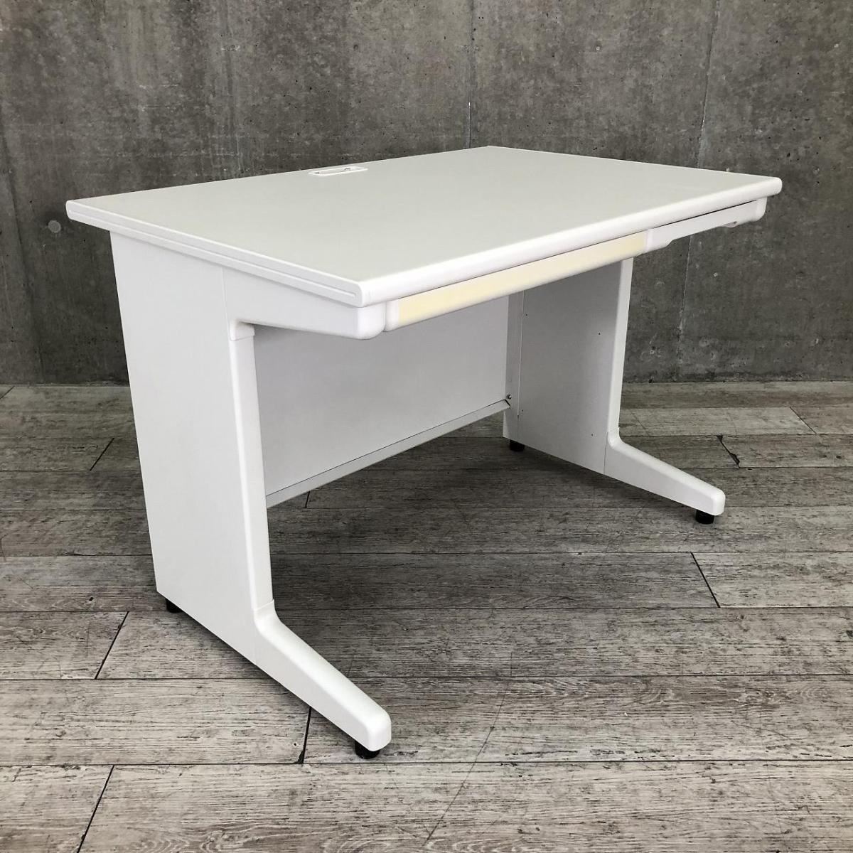 【定価約5万円】【今や希少品?!W1000mmのちょうどよいコンパクトサイズ!】■プラス(PLUS)製 LAシリーズ 平机 引き出し付 W1000㎜ ■ホワイト ■配線口 ※日焼けあり