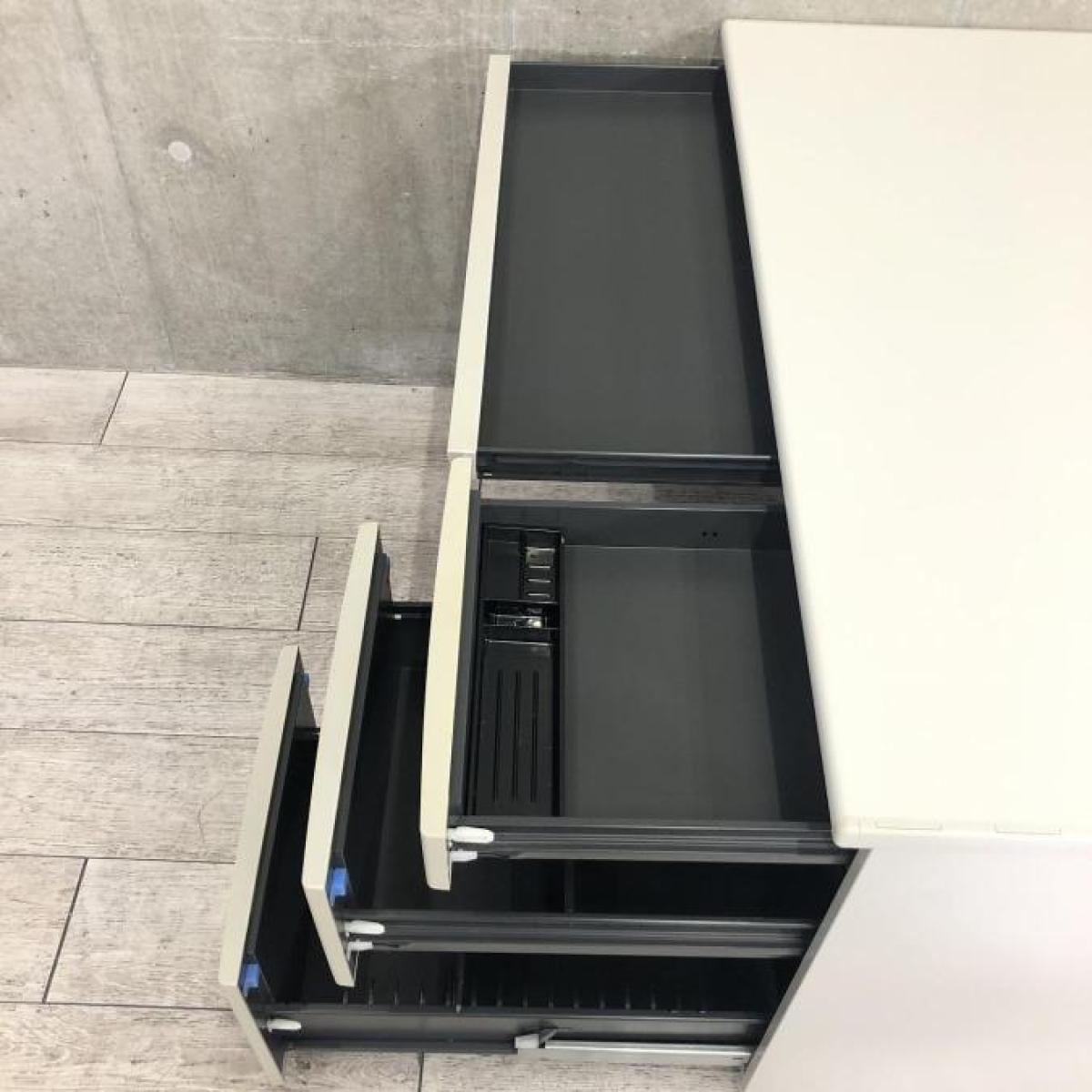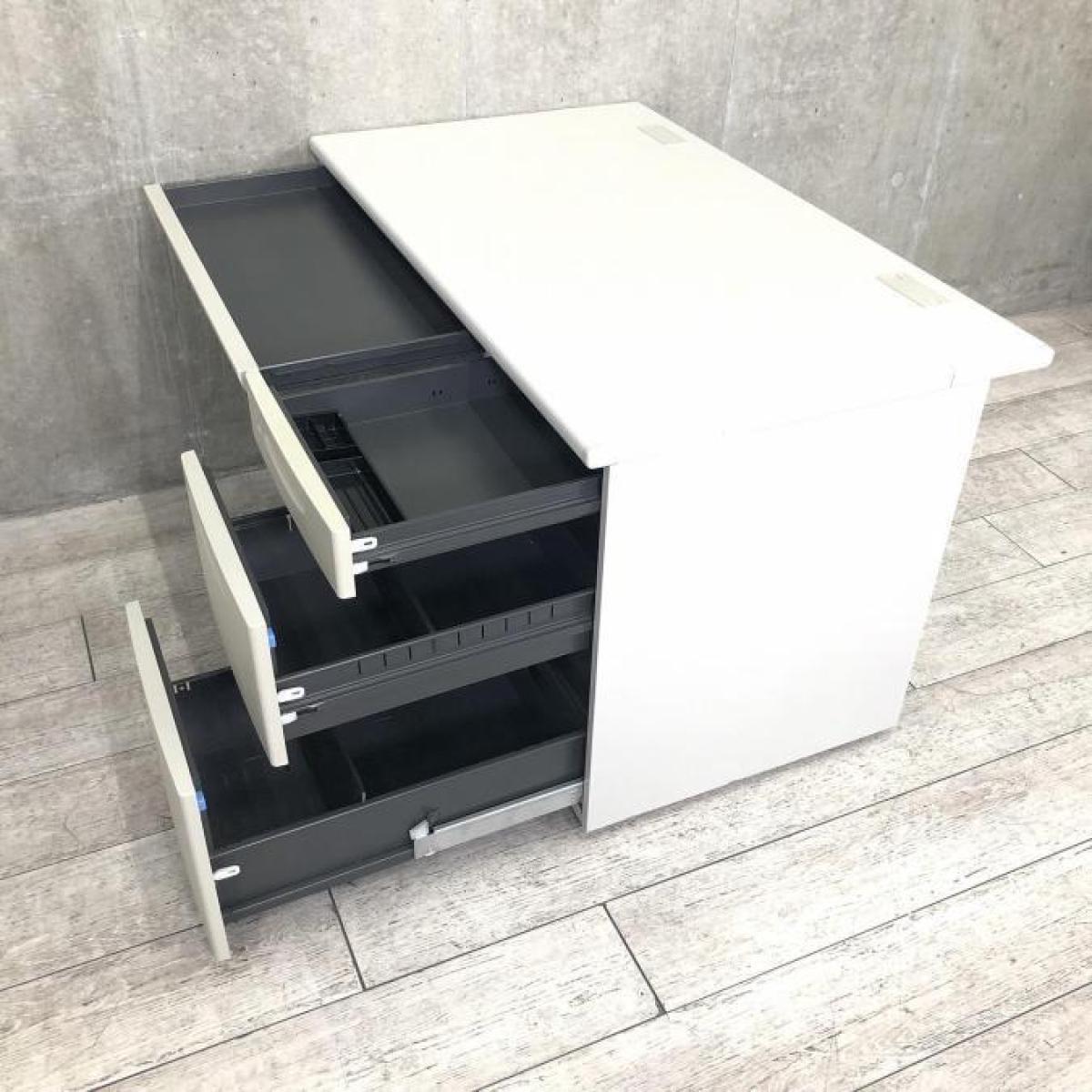 - 袖机のワゴンは、最下段がロング引出しになっており、従来より収納力120%アップ。