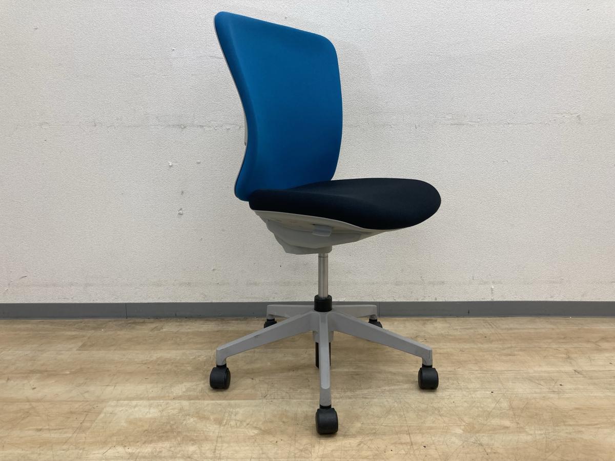 【座面使用感の汚れあり】イナバ製 バルチェシリーズ ブルー×ブラック セルフアジャストメント機構採用であらゆるワークシーンにフィット! スタンダードなデザインで座りやすい 肘無しハイバックチェア!!中古 肘無し ブルー 【K】