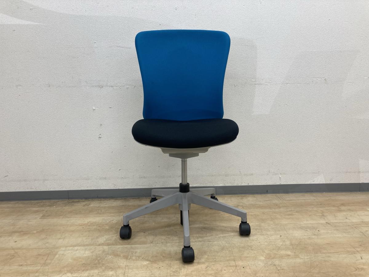 【座面使用感の汚れあり】イナバ製 バルチェシリーズ ブルー×ブラック セルフアジャストメント機構採用であらゆるワークシーンにフィット! スタンダードなデザインで座りやすい 肘無しハイバックチェア!!中古 肘無し ブルー 【K】