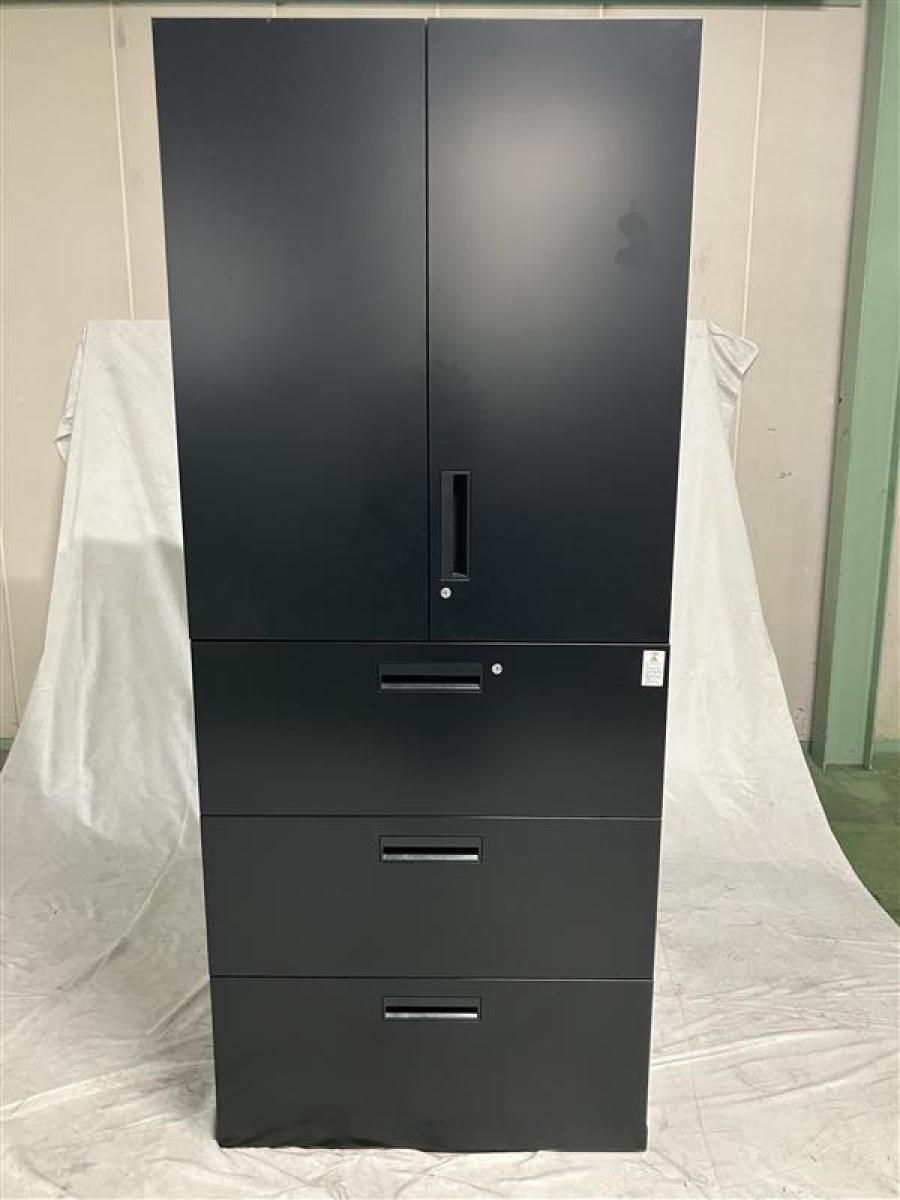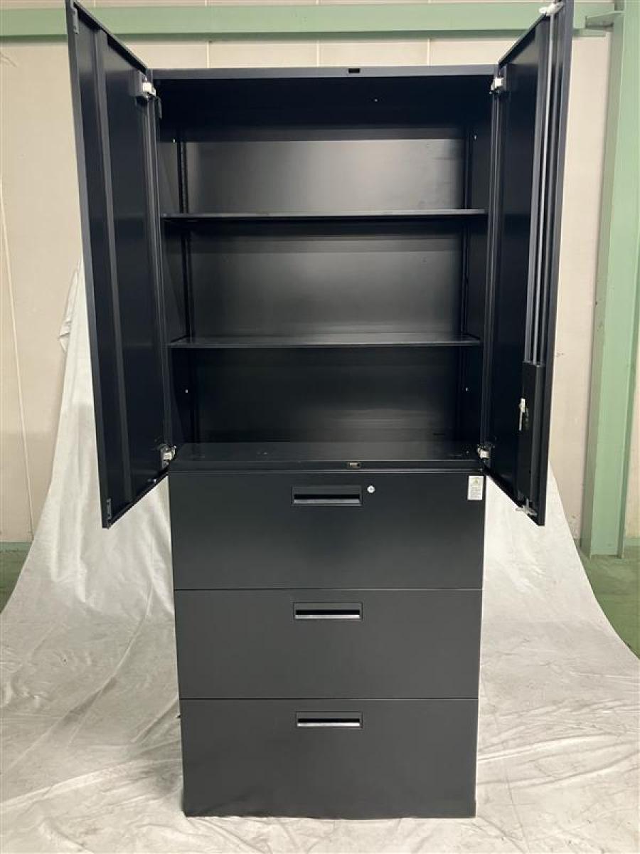コクヨ エディアシリーズ 3段ラテラル書庫 定番鍵付キャビネット シリンダー錠 レアなブラックカラー A4×3段分を収納可能 ※CS在庫- 名古屋本店