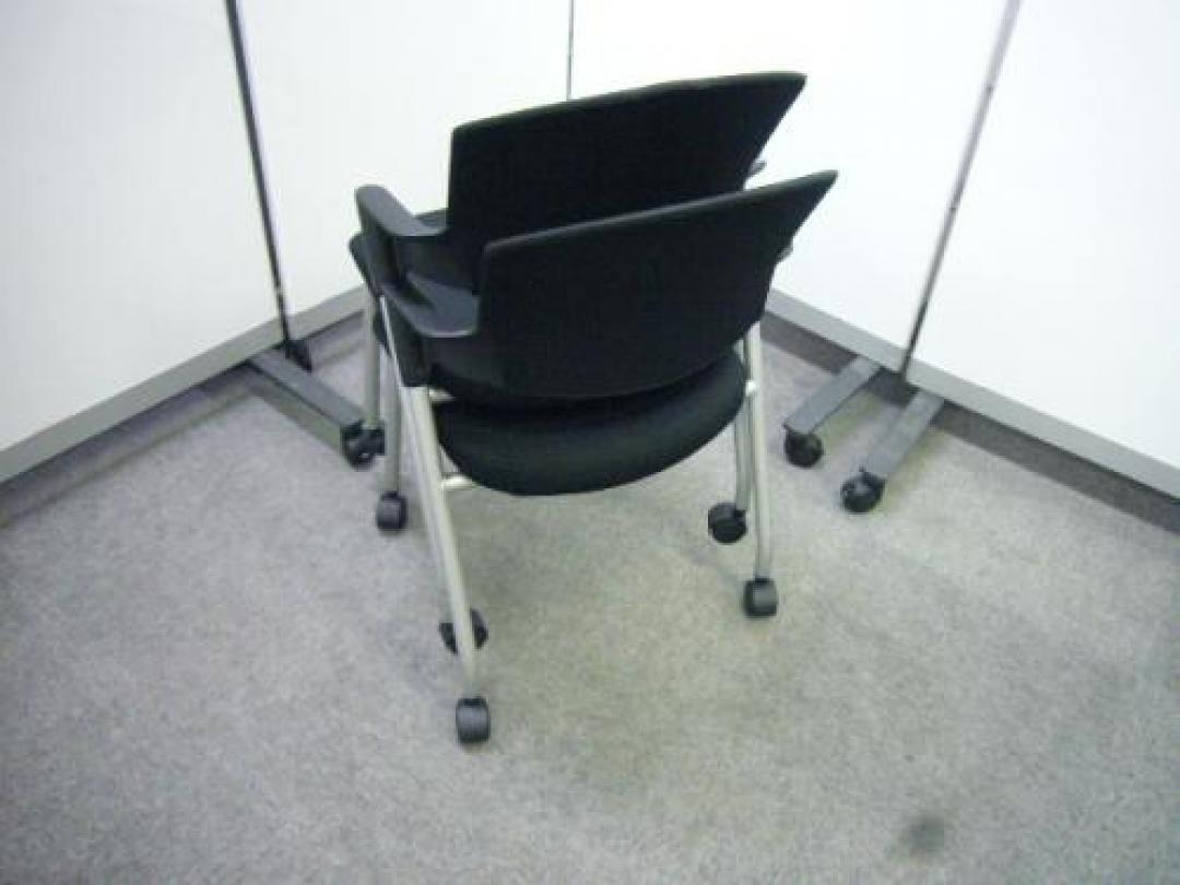 【シンプルスマートなスタッキングチェア!分厚いクッションで長時間でも快適な座り心地!】■スタッキングチェア 肘付ミーティングチェア ■固定肘 ■キャスター付 ■ブラック ■背面樹脂/コクヨ(KOKUYO/プロッティ