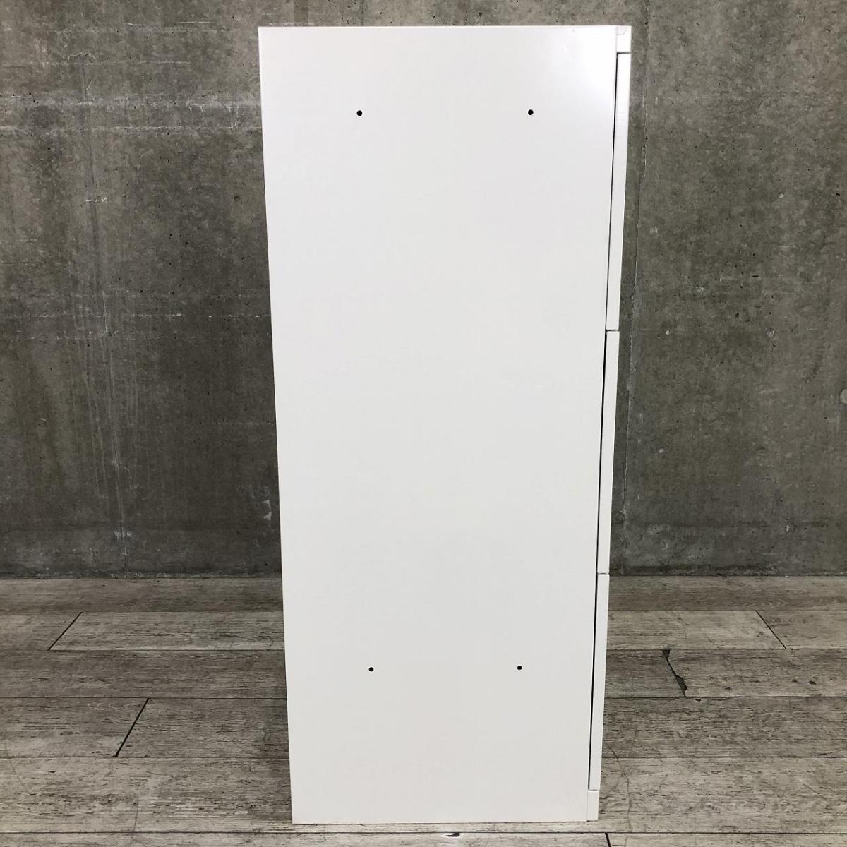 オカムラ レクトライン 3段ラテラル書庫 ホワイト天板 シリンダー錠 鍵付き ※取っ手部分に若干日焼けあり