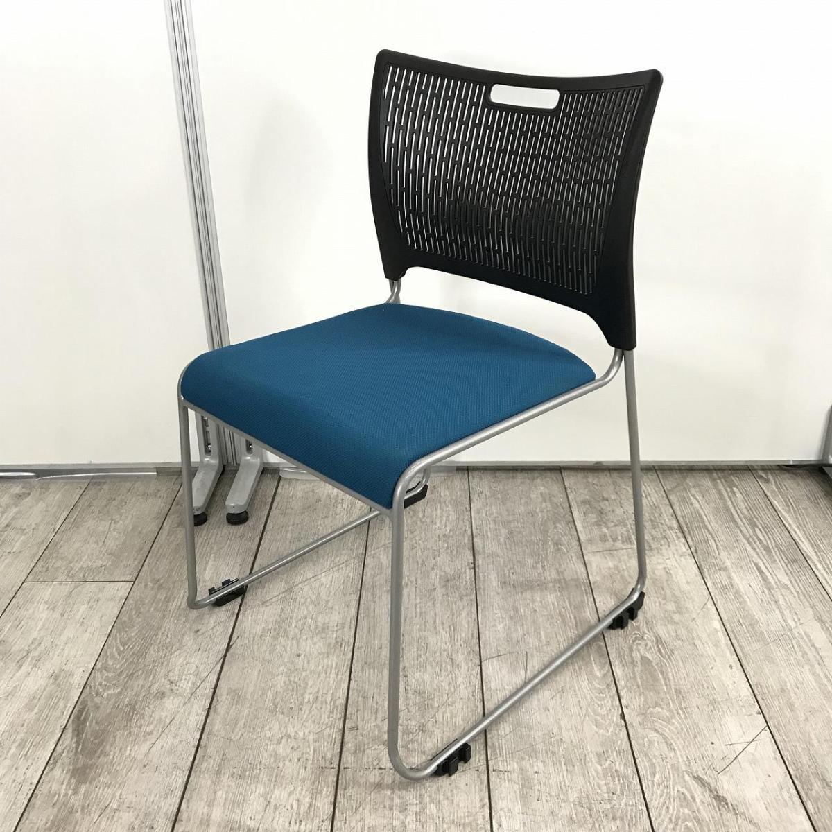 【在庫入替セール品!】コンパクトで人気なミーティングチェア!会議用スタッキングチェアの定番!重ねて収納可能な便利な商品! ■オカムラ/レーテチェア/ブルー 【キャスター無で安定感〇】