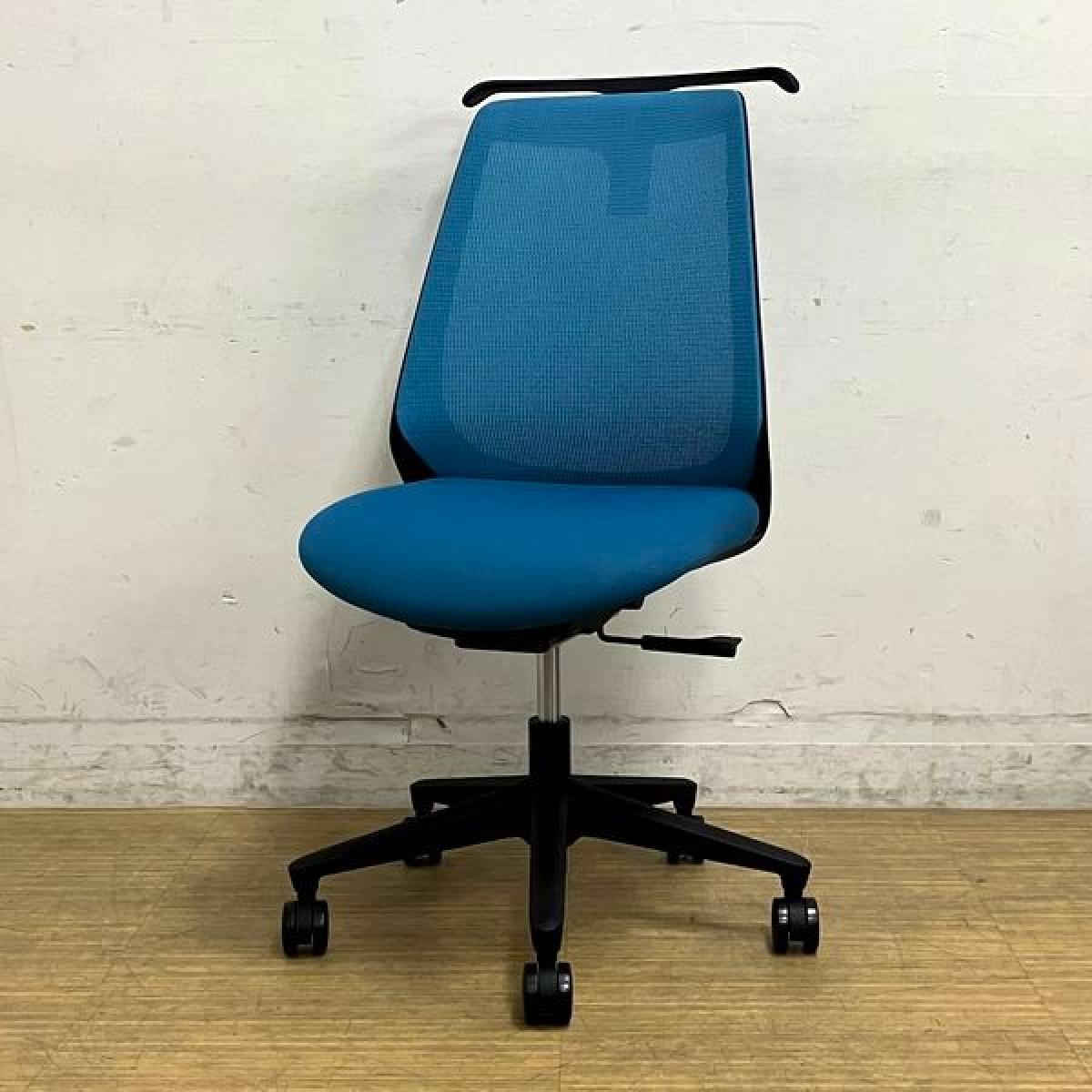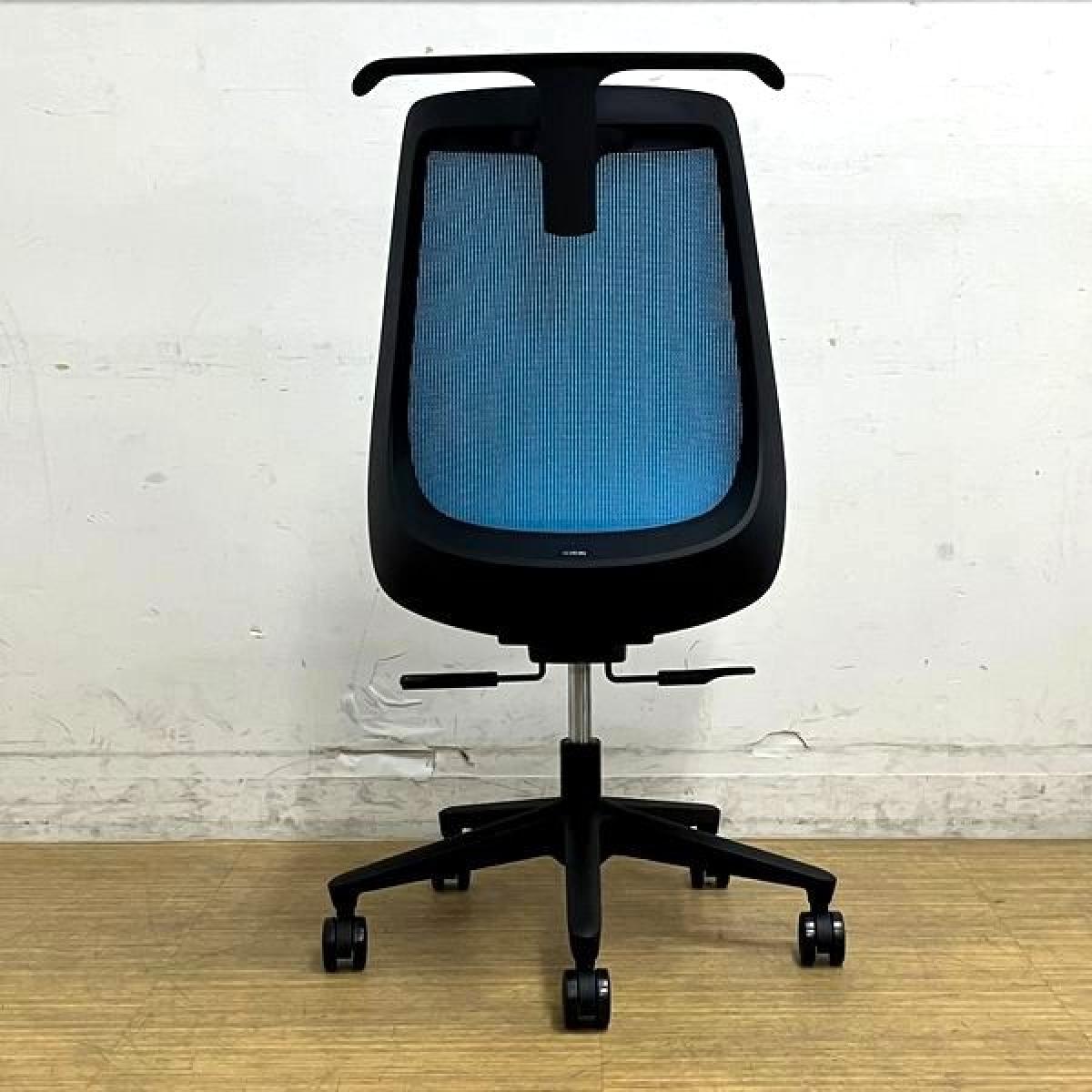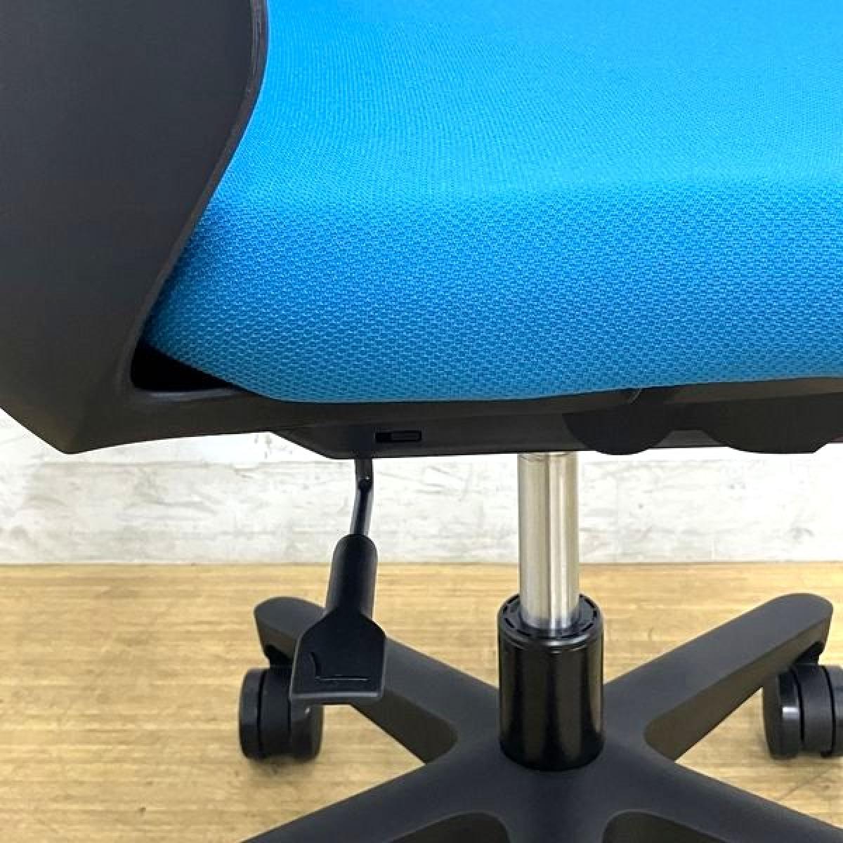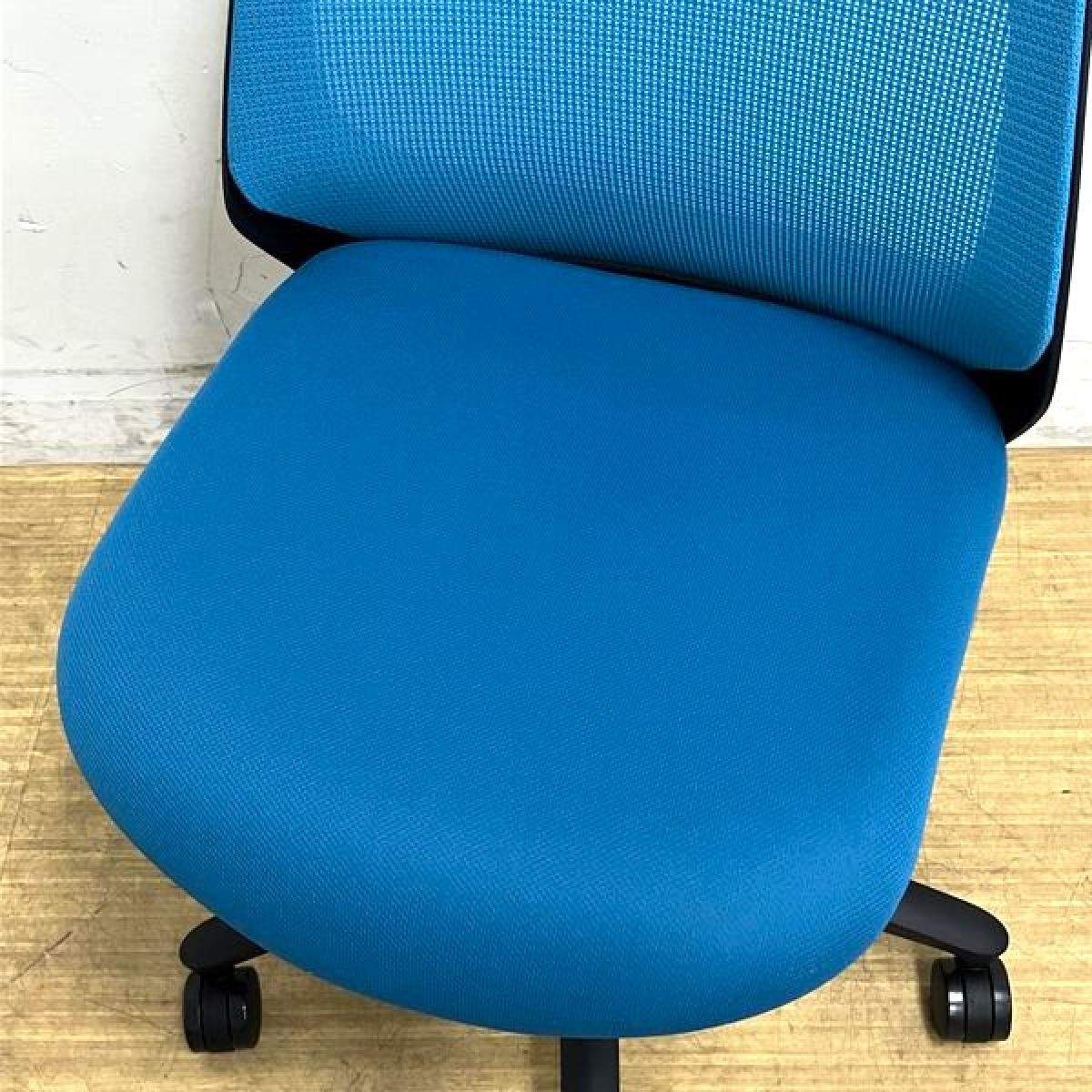 イトーキ ノナ 肘無しチェア 軽快なメッシュで爽やかな使い心地 ストロングブルー×ブラックフレーム コンパクト設計 コートハンガー付き- 名古屋千種店