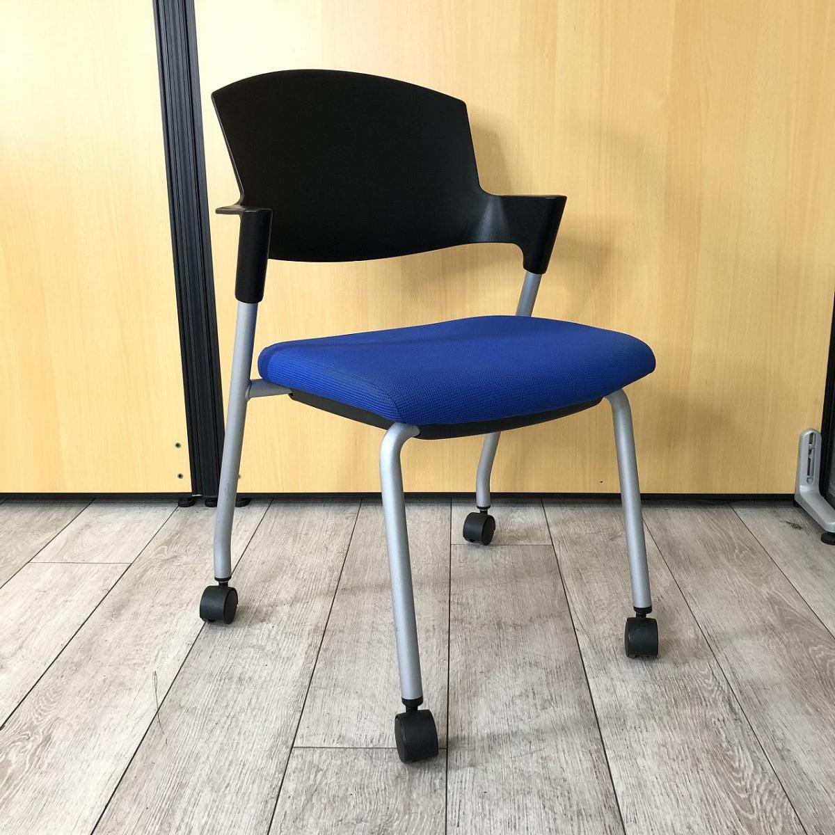 【シンプルスマートなスタッキングチェア!分厚いクッションで長時間でも快適な座り心地!】■コクヨ(KOKUYO)製 プロッティ (Protty) 肘付 ミーテイングチェア スタッキングチェア ■固定肘 ■ブルー×ブラック ■背面ヌードタイプ在庫がある店舗一覧