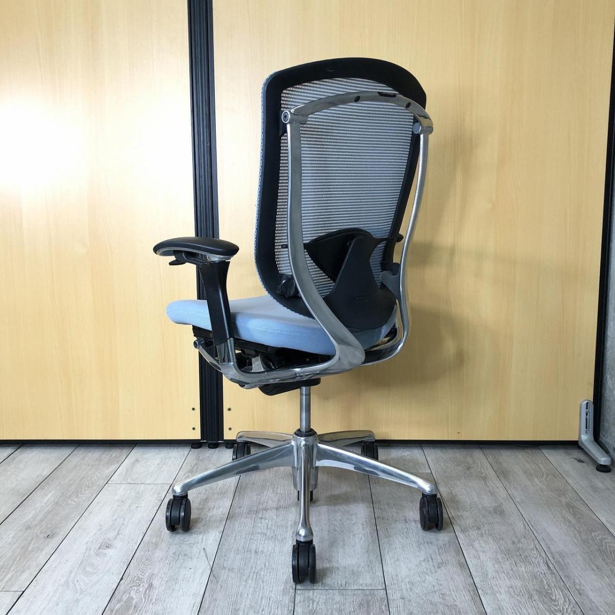 【王道チェア!】■オカムラ製(okamura) コンテッサ (Contessa) ハイバック 肘付き ■ライトブルー ■背面メッシュ ■ランバーサポート付 ■可動肘