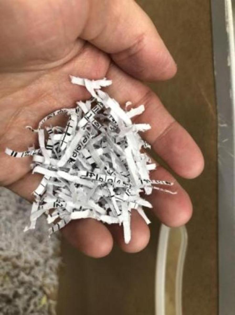 細断くずはミリ単位でチップ状に細断され、収容能力を高めます。
