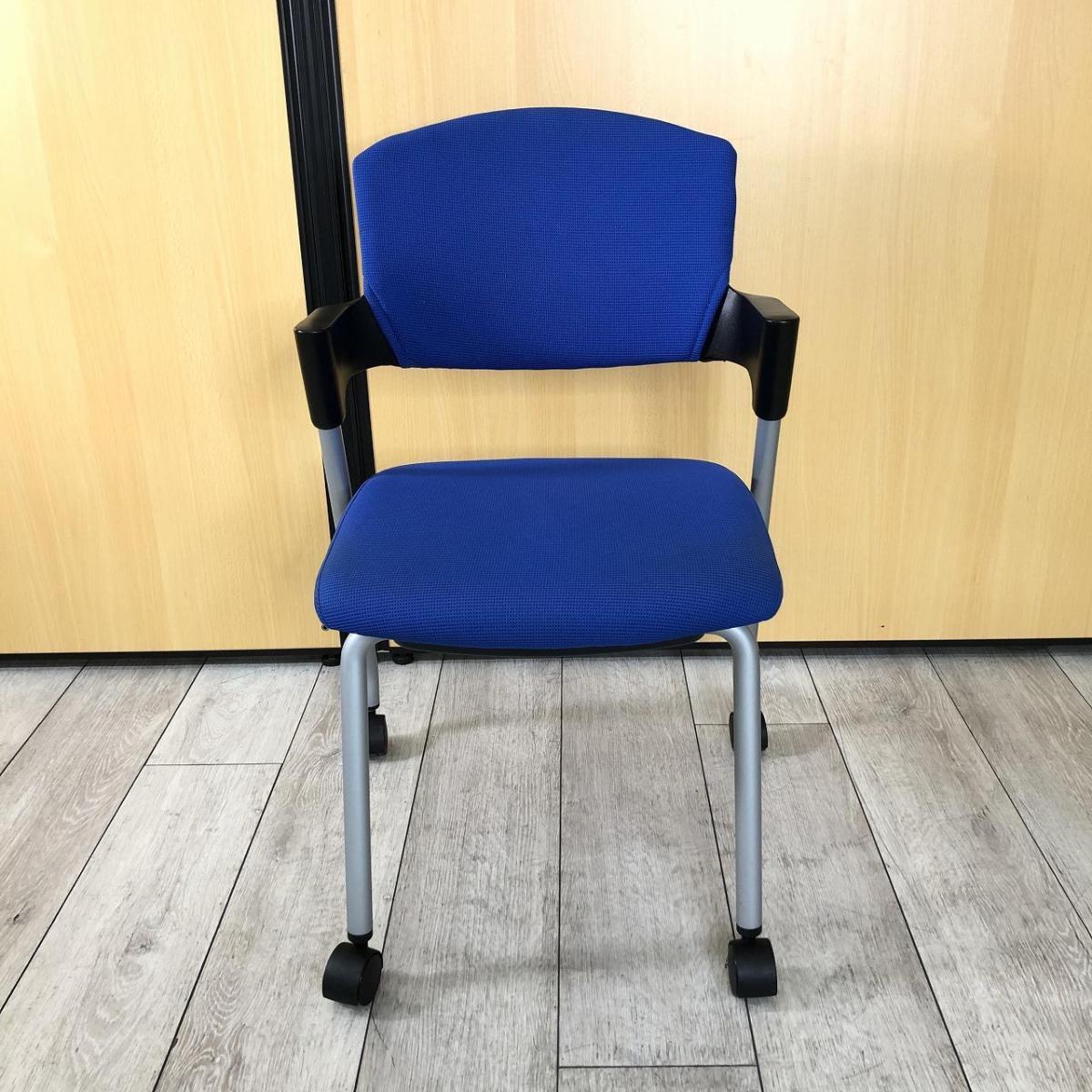 【分厚いクッションで長時間でも快適な座り心地!】■コクヨ(KOKUYO)製 プロッティ(Protty) スタッキングチェア 肘付き ■ブルー ■キャスター付【入替セールにつき40%OFF!】- つくば店