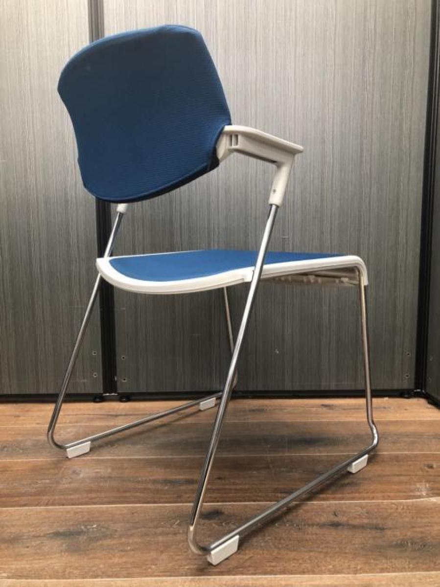 【74脚大量入荷】 ■コクヨ サティオ ブルー 肘付き キャスター無し- 在庫数