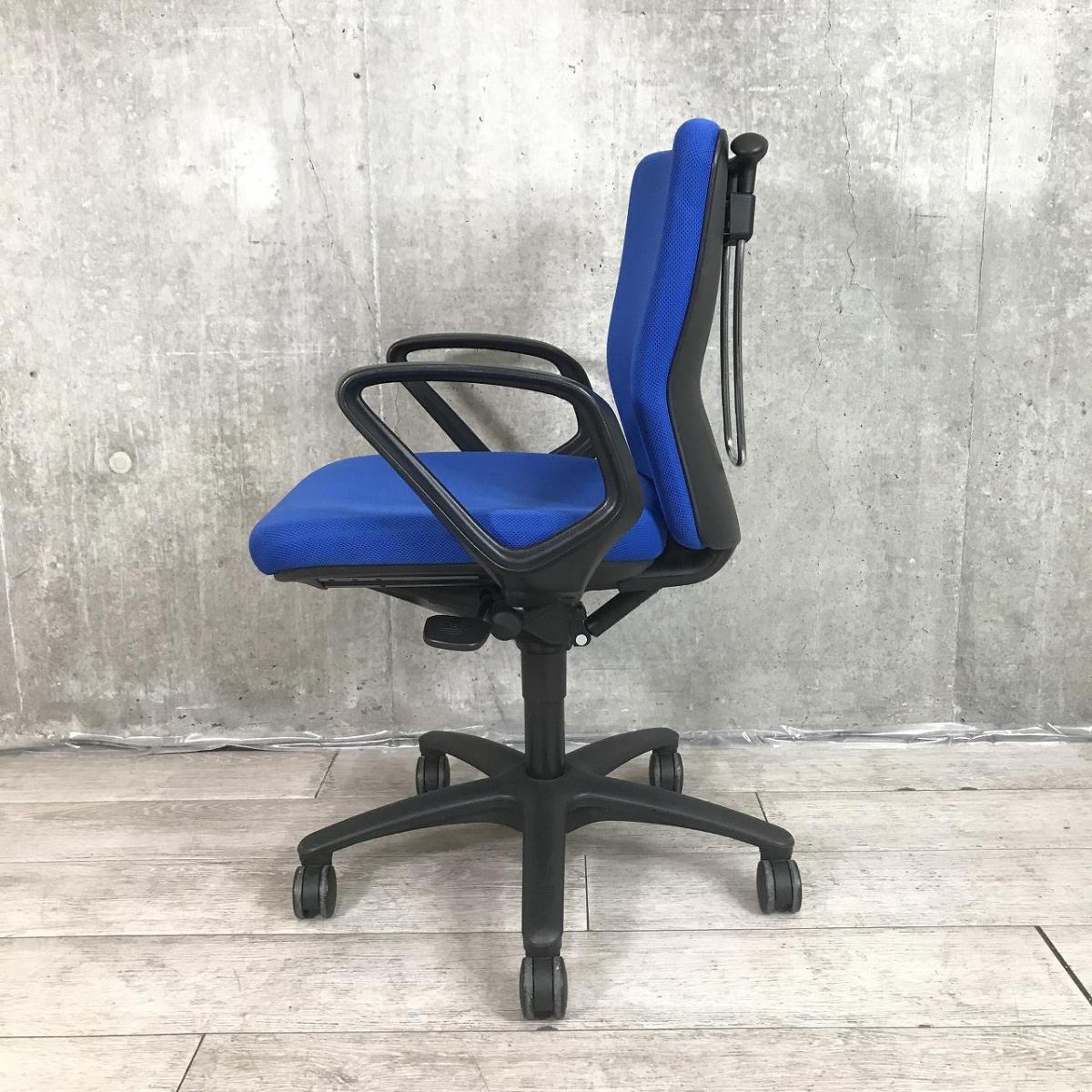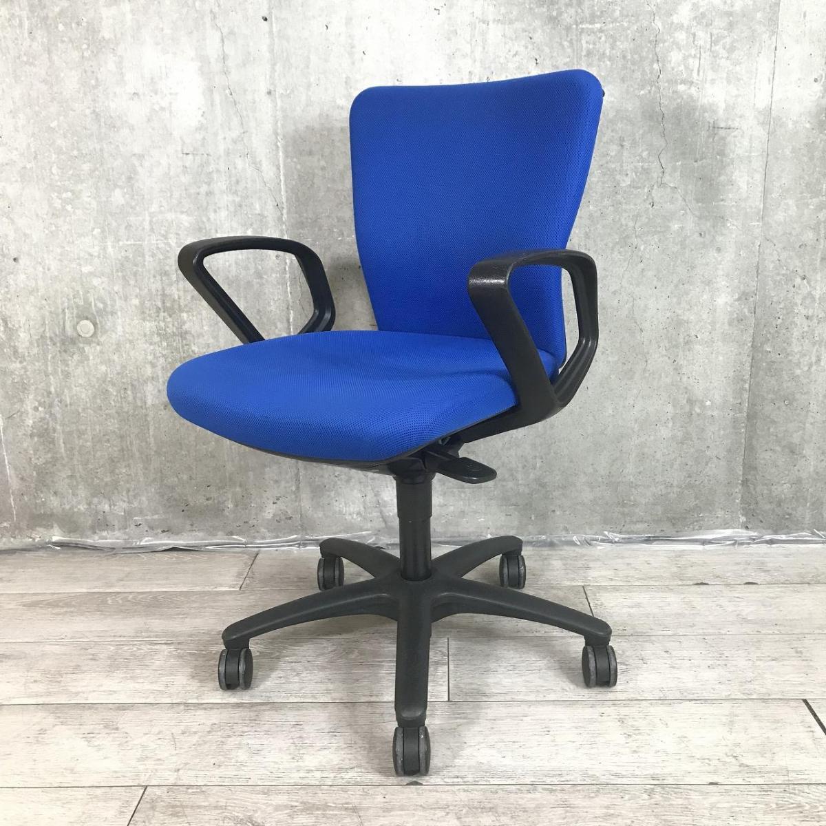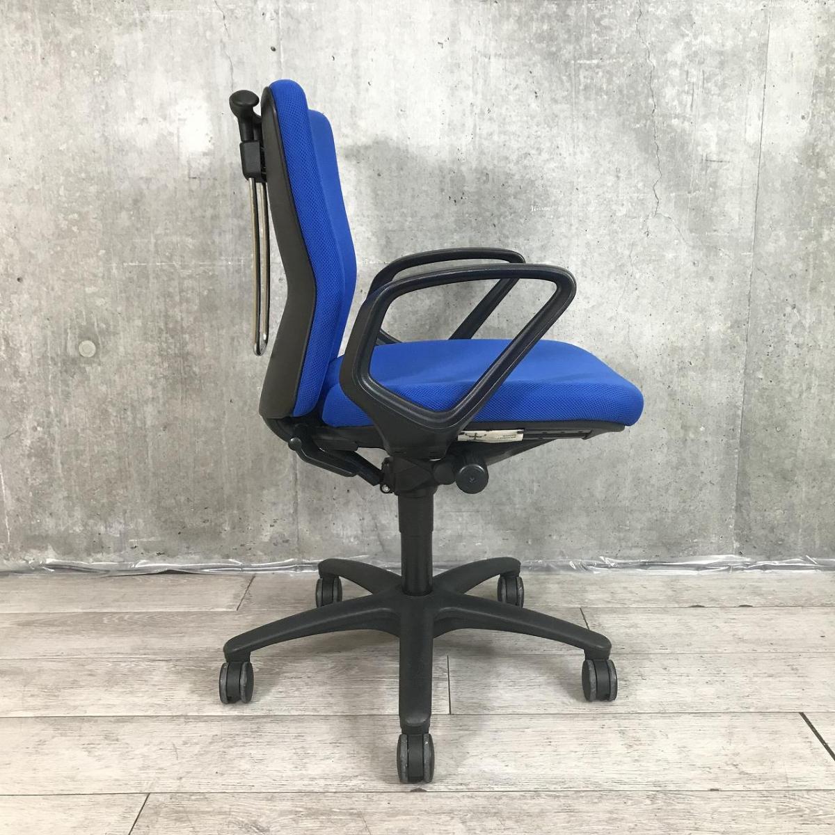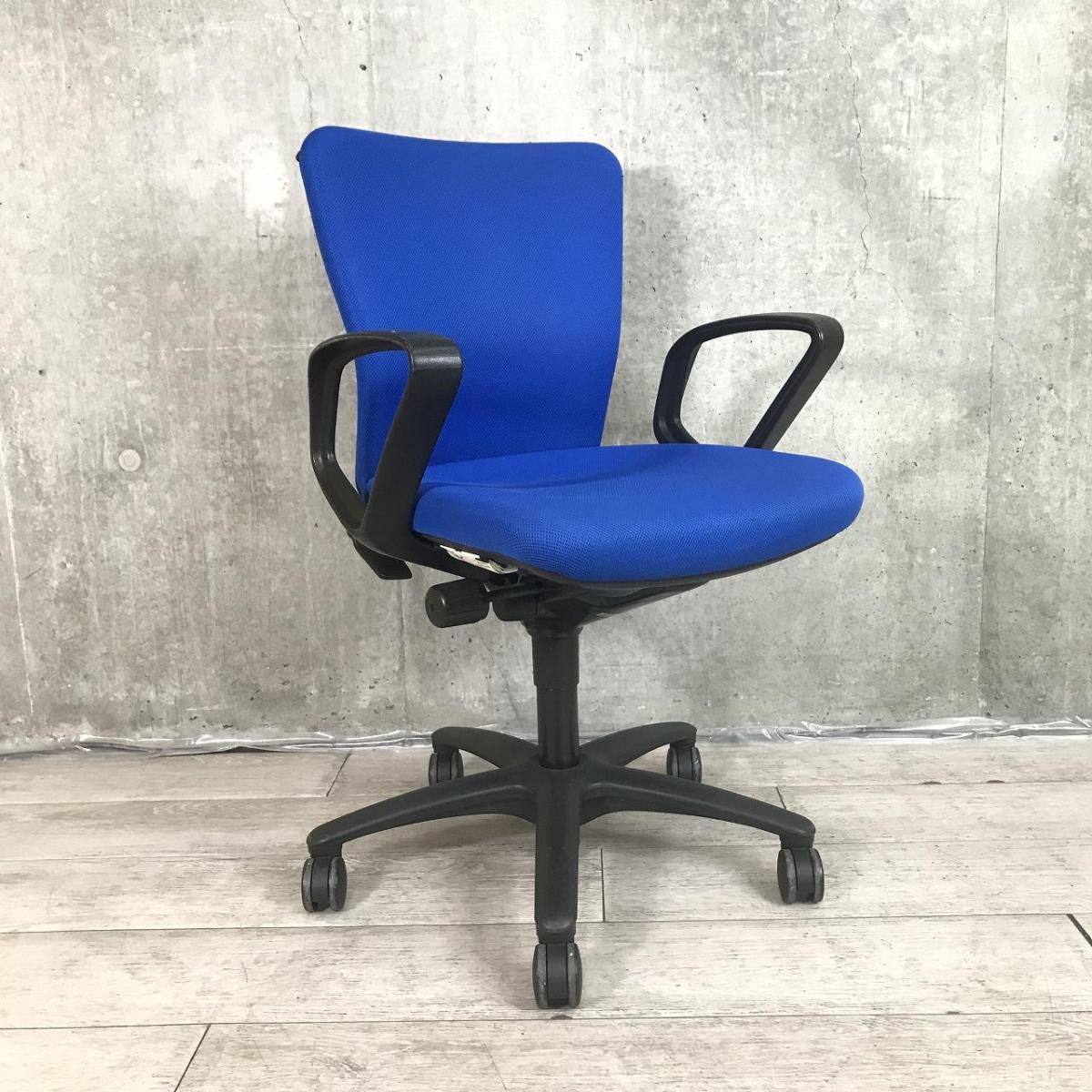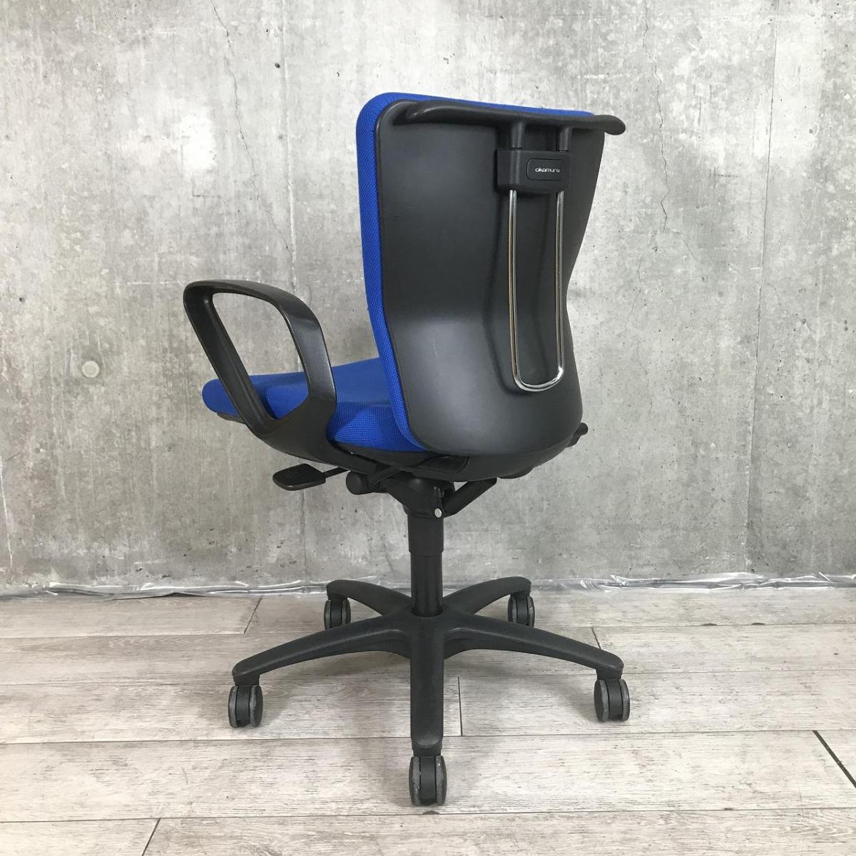定番のオカムラ製のチェアが入荷!厚めのクッションで座り心地抜群! ■オカムラ/カロッツァ/ブルー ブラックシェル リング肘