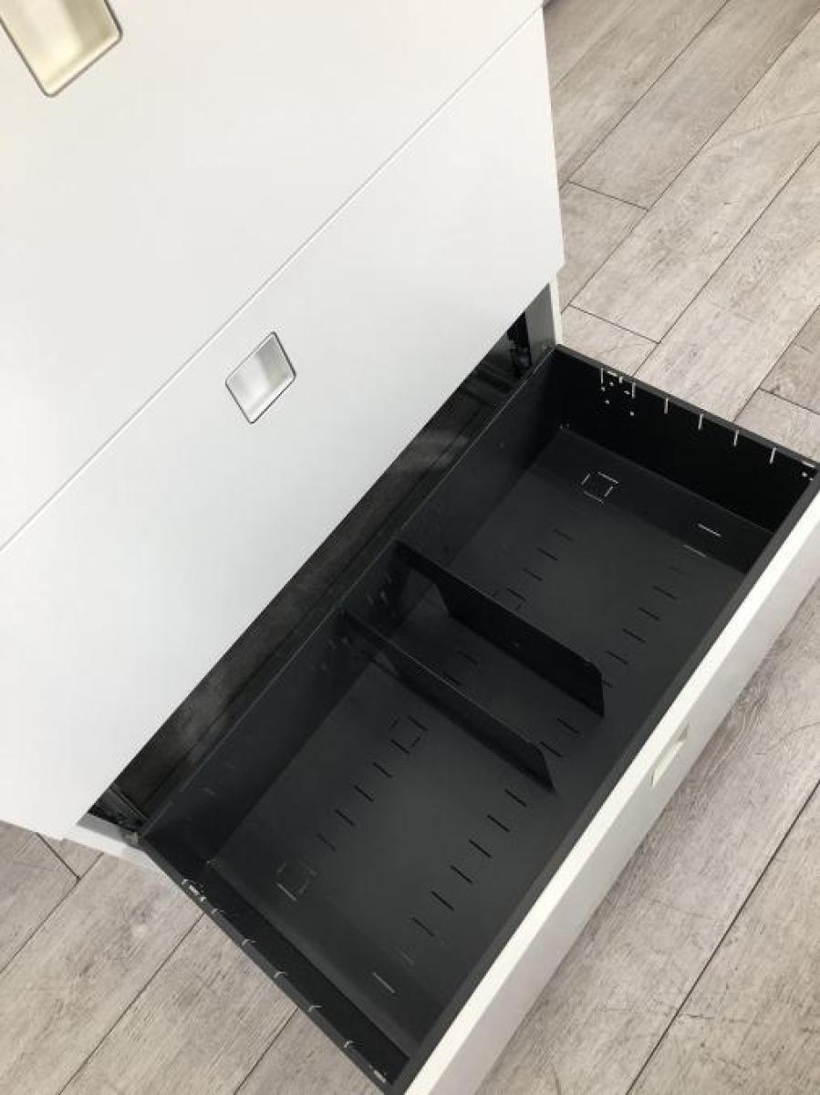 オフィスの必需品!書類をスッキリ整理できる容量の3段キャビネット取っ手がどの方向からでも開くマルチハンドル! ■オカムラ/レクトライン(Rectline)/ホワイト