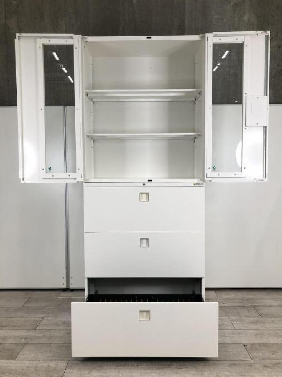 【西】★納品・設置に関してご気軽にお問い合わせください!!!★【福岡西店在庫】【大人気のガラス扉書庫が入荷!引き出し書庫とのセット商品!これ1台で書類整理の問題が解決!】■オカムラ(okamura)製 レクトライン 書庫セット ガラス扉両開き+3段ラテラル ハイキャビネット ■ホワイト ■シリンダー鍵【熊本オフィス家具】【熊本中古家具】【中古事務什器】【中古チェア】【中古椅子】【半導体】*熊本市で、中古オフィス用品・オフィス家具をお探しなら「オフィスバスターズ熊本サテライト店」へ*※サテライトは商談スペースのみの為、在庫は福岡の在庫を掲載しております。商品につきましてはお電話にてお問い合わせください。在庫がある店舗一覧