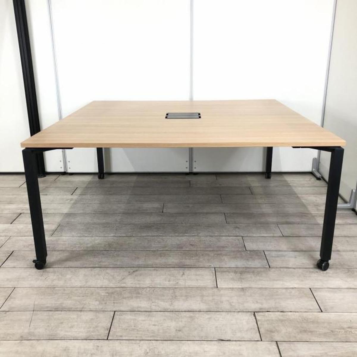 【スタイリッシュなミーティングテーブル!ワークデスクとしても使用可能!】 ■コクヨ製 ワークフィット (WORKFIT) ミーティングテーブル ■W1600mm ■配線ダクト付き ■木目ナチュラル天板×ブラック脚- 岐阜店