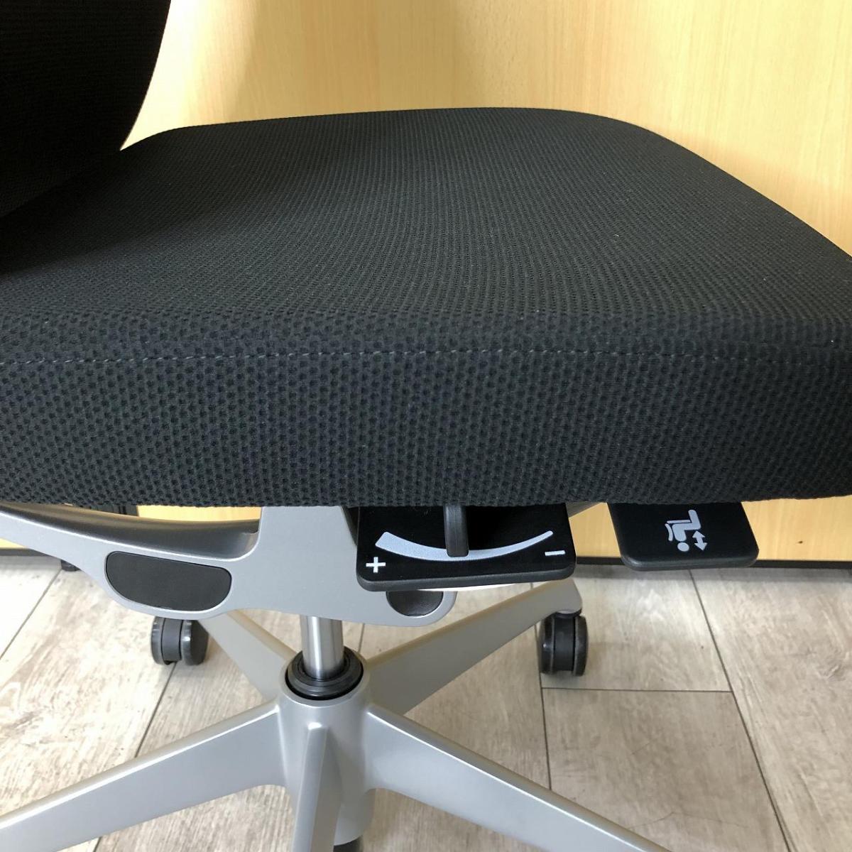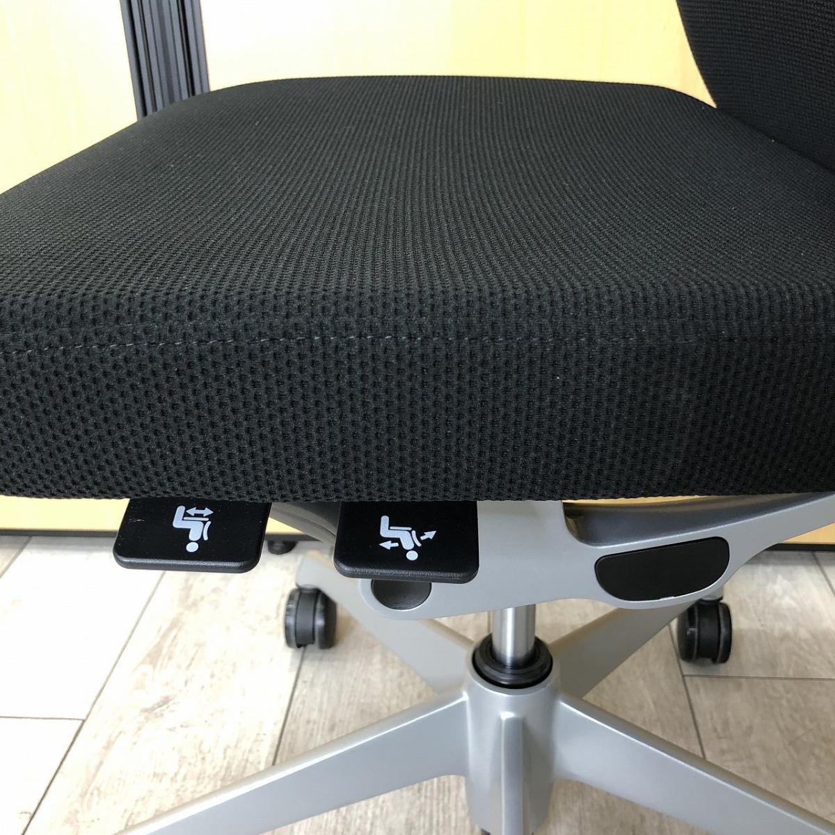 座面の高さや前後などの基本的な調整レバーが座面裏の前方に集約されており、姿勢を変えずに調節ができます。