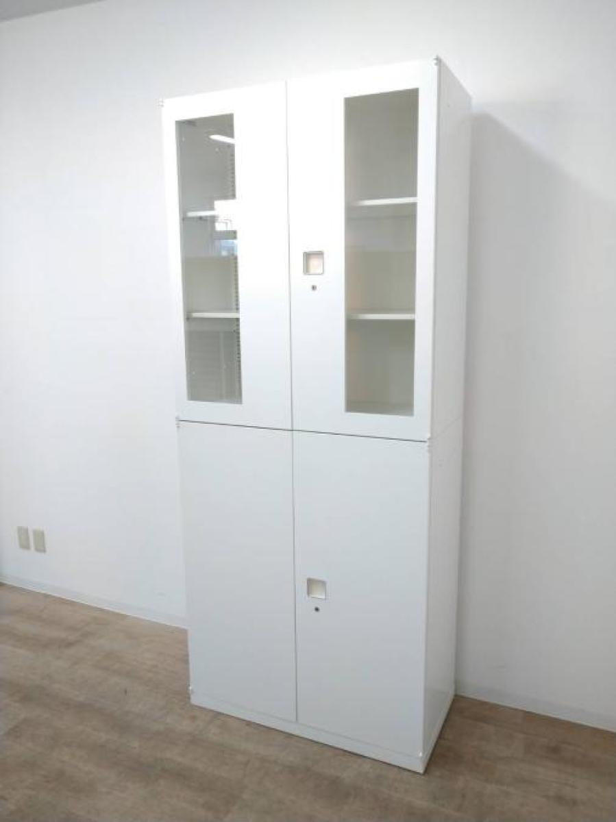 ホワイトカラーの人気商品!上下両開き書庫のセット商品になります!