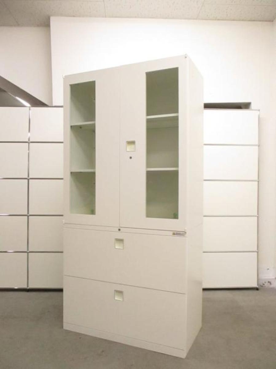 鍵付き書庫も大量に在庫しております。 タイプとして両開き・引き戸・3段ラテラル・クリスタルトレイ等種類も豊富に置いております!