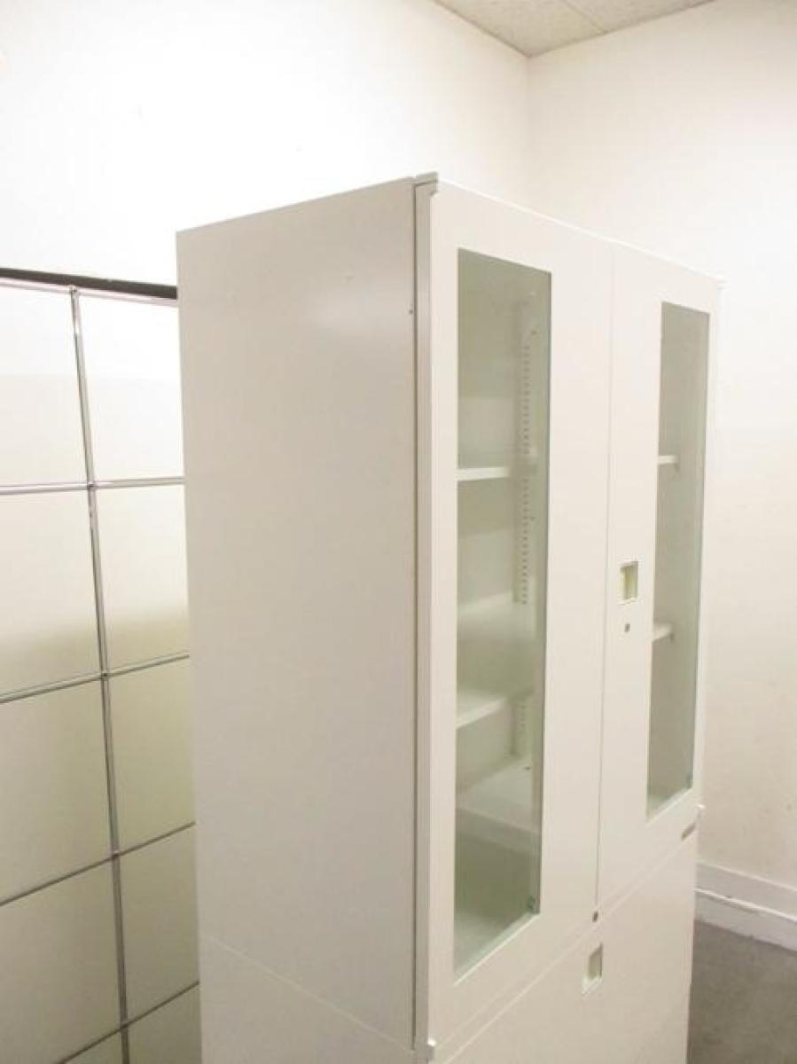 【西】【福岡西店在庫】【高さ1800!】【中古ではレアなガラス書庫セット!】オカムラ/レクトライン/ホワイト/シリンダー錠/両開き+2ラテ【福岡オフィス家具】【福岡中古家具】【中古事務什器】【中古チェア】【中古椅子】- 福岡西店
