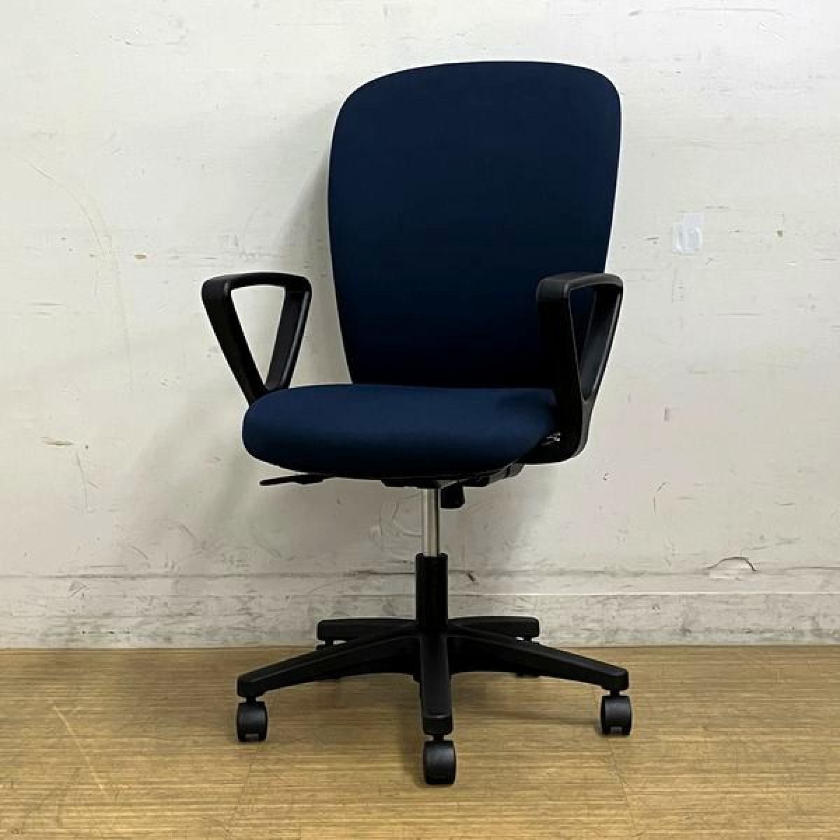 イトーキ リエットR ハイバックモデル シンプル機能で使いやすさ重視 ループ肘付き クロス:ネイビーブルー フレーム:ブラック- 名古屋千種店