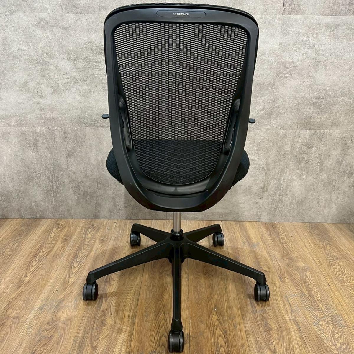 【T11】【商品入替のため、残り2脚限り】オカムラ製 シルフィー ブラック 肘無し ローバック 背面メッシュ 三次元曲面が身体にフィット! 前傾チルト機能付き大人気メッシュチェア! 肘無しローバックチェア!!