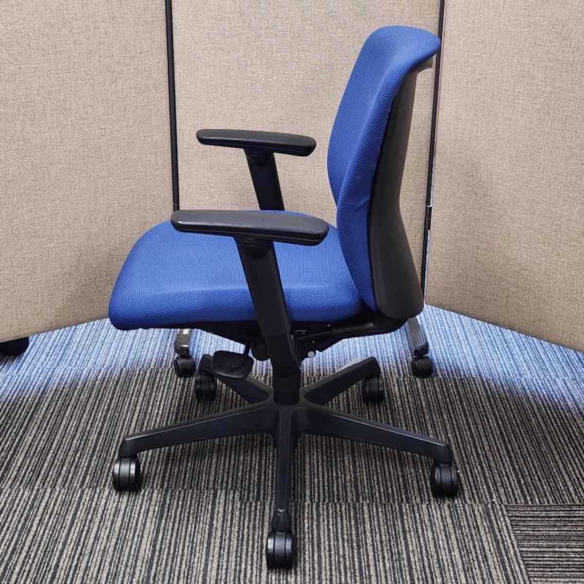 【シンプルなデザインと厚みのあるクッションが大人気!機能充実のワーキングチェア!】■オカムラ(okamura)製 スラートチェア(sulato) ローバック 肘付き ■ミディアムブルー