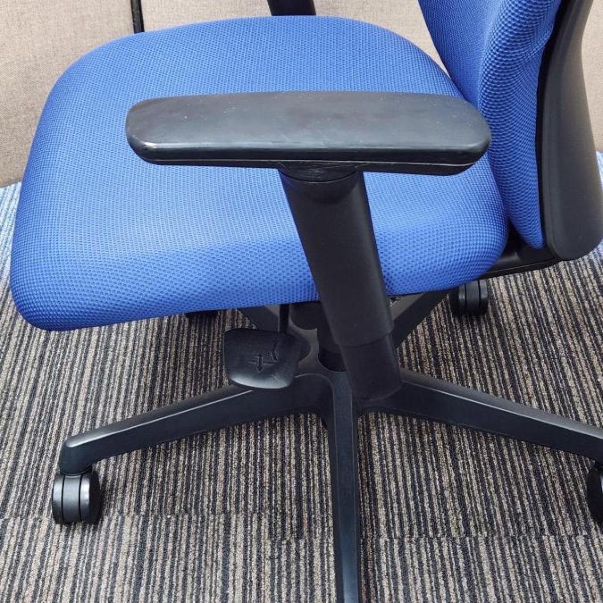 【25/➏】【西】※※残り1脚限定※※【西店撮影商品】つかいやすくデザインと厚みのあるクッションが大人気!!】オカムラ スラート ブルー 可動肘 アジャストアーム クッション 柔らかい 事務椅子【熊本オフィス家具】【熊本中古家具】【中古事務什器】【中古チェア】【中古椅子】【半導体】*熊本市で、中古オフィス用品・オフィス家具をお探しなら「オフィスバスターズ熊本サテライト店」へ*※サテライトは商談スペースのみの為、在庫は福岡の在庫を掲載しております。商品につきましてはお電話にてお問い合わせください。サーキュラーバリューCO2削減量の算出について