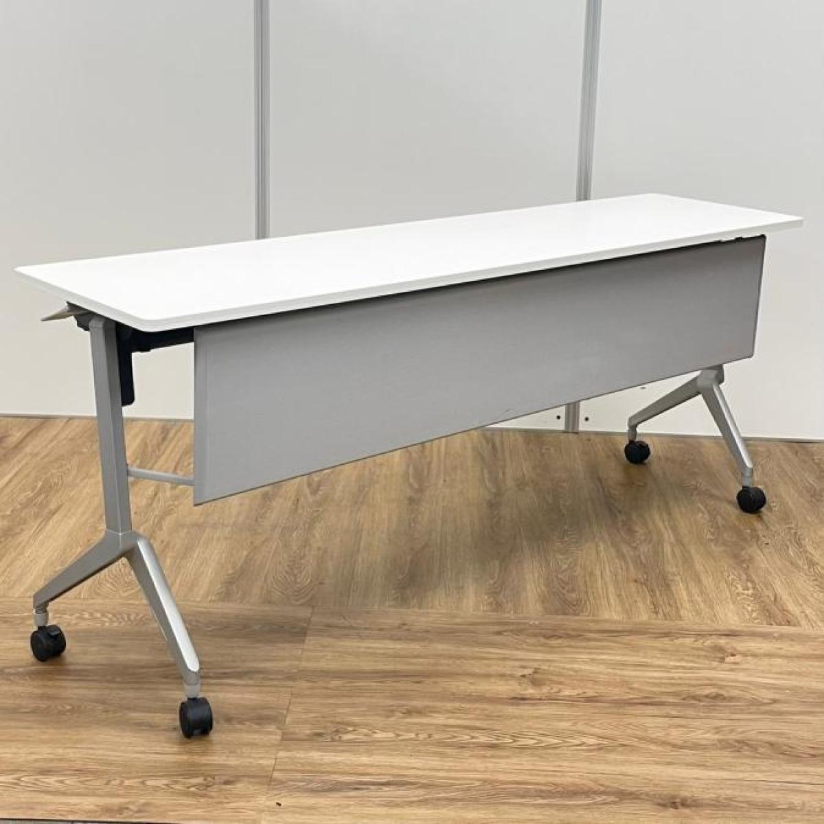 【会議などに使いやすいテーブル!】 ■コクヨ製 リーフラインシリーズ 幅1800/奥行450サイズ ■ホワイト ■幕板付き サイドスタックテーブル- 岐阜店
