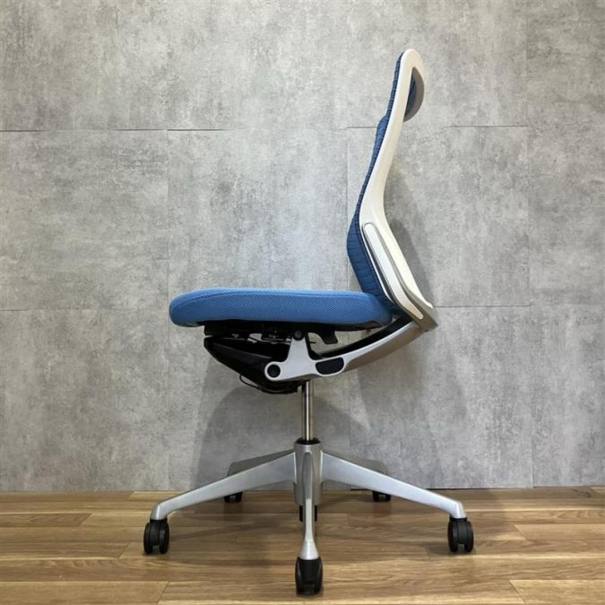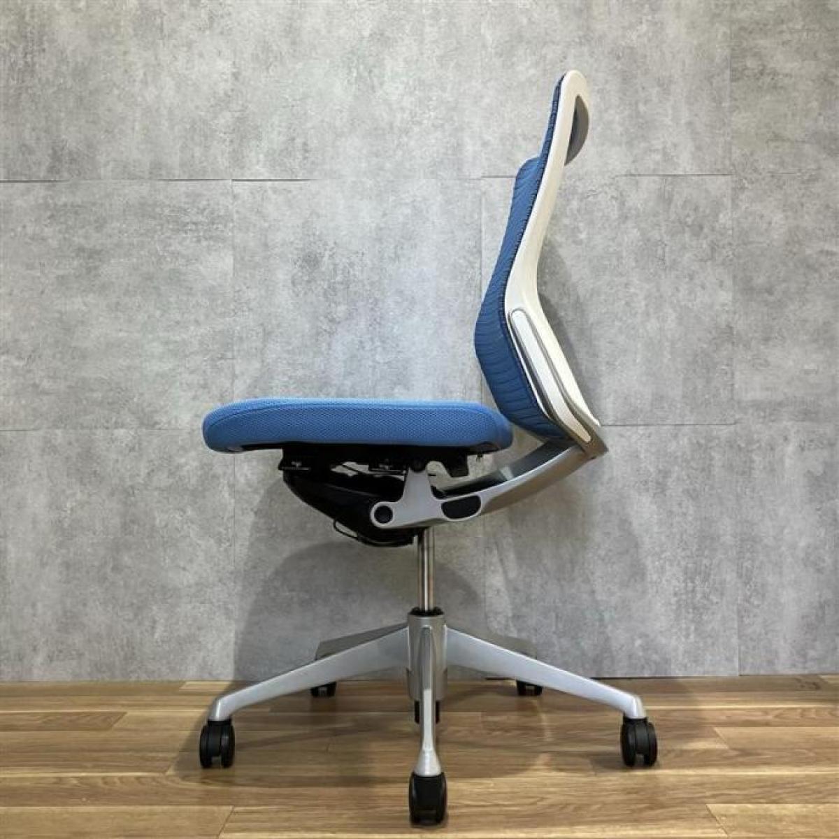 【定価約18万円】【満足度の高い座り心地!上質なクッション!機能性も充実!】■オカムラ/コーラル ■肘無ミドルバックチェア ■ブルーカラー ■背メッシュ ■ヘッドレスト付き