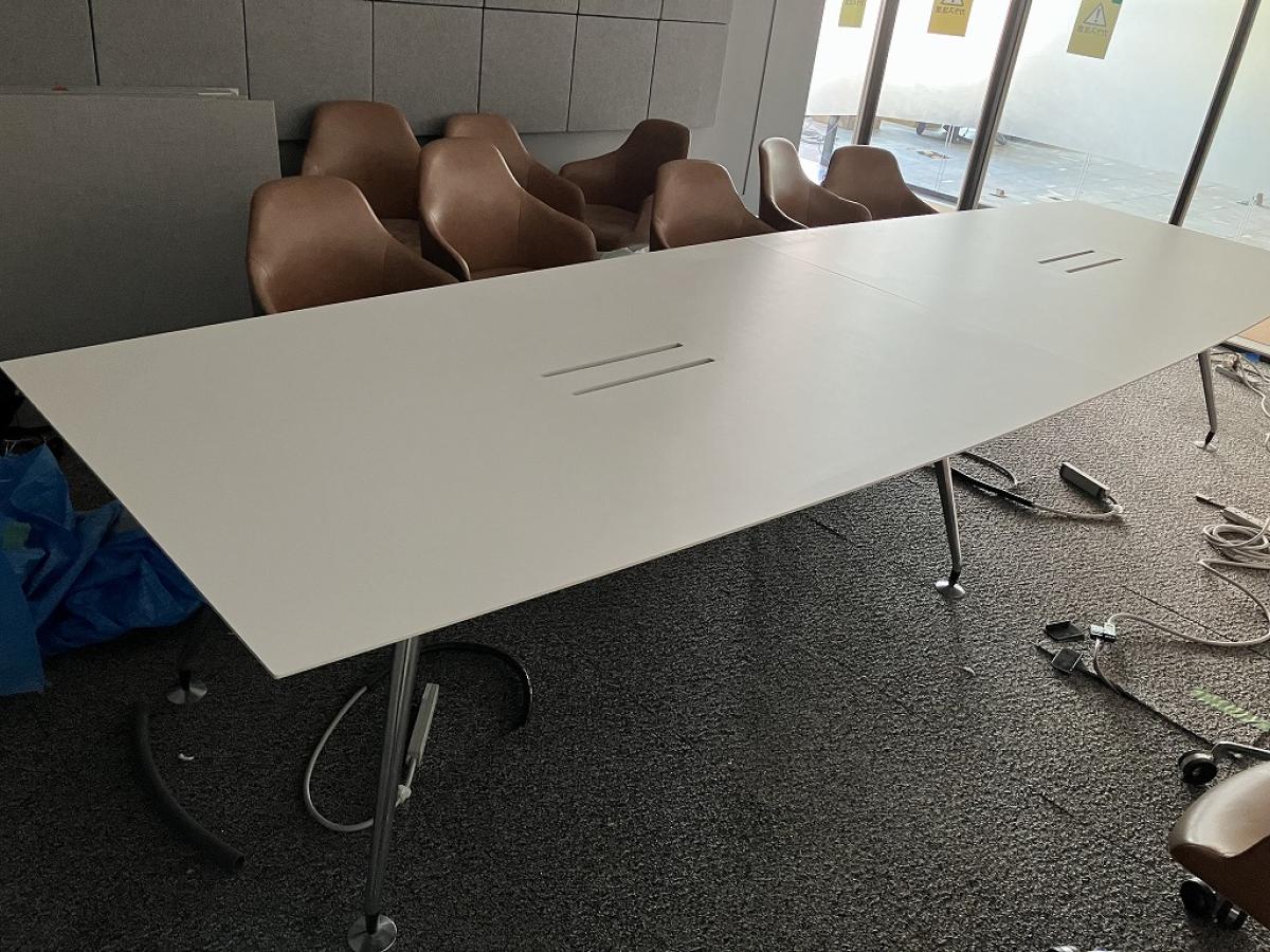 天板ホワイトの大型会議用テーブルが入荷致しました。 同シリーズのW3200とW2400タイプも入荷しております。 ※マテハン本舗の中古商品は、千葉県柏市に在庫がございます。- マテハン本舗