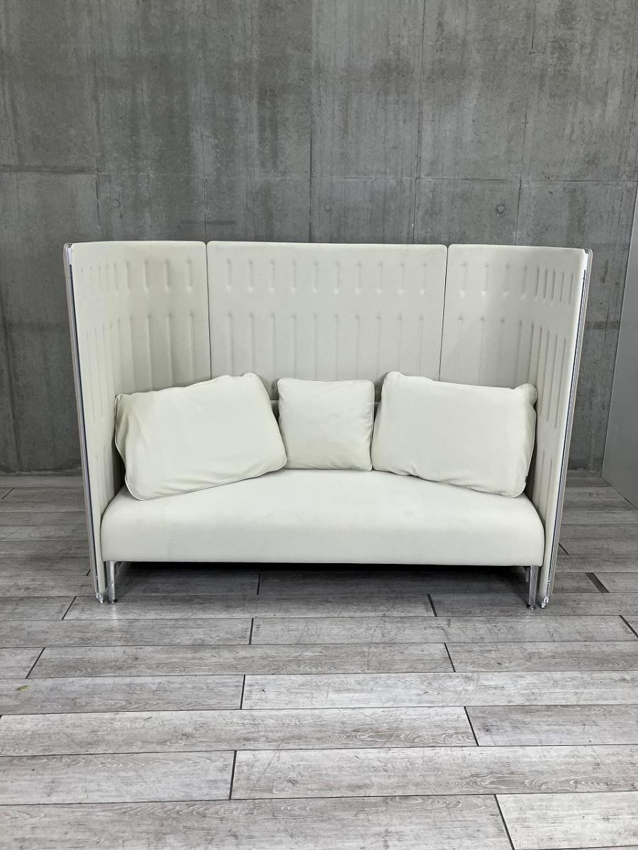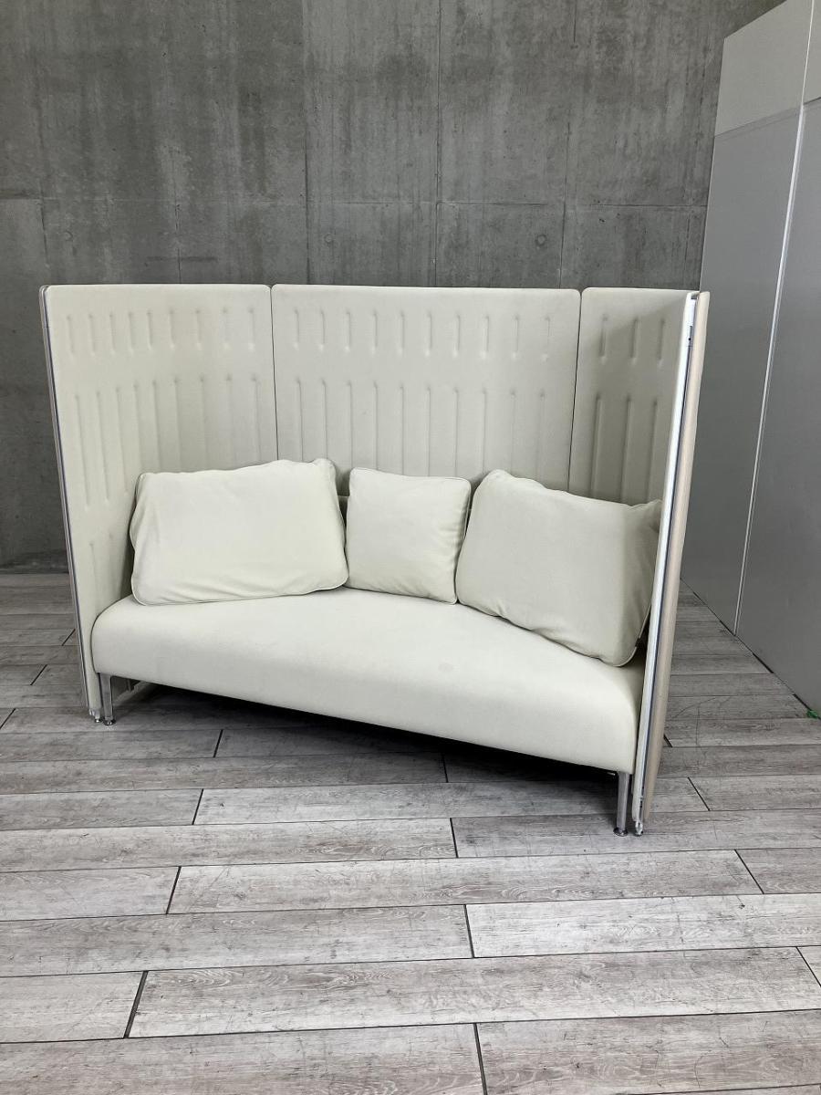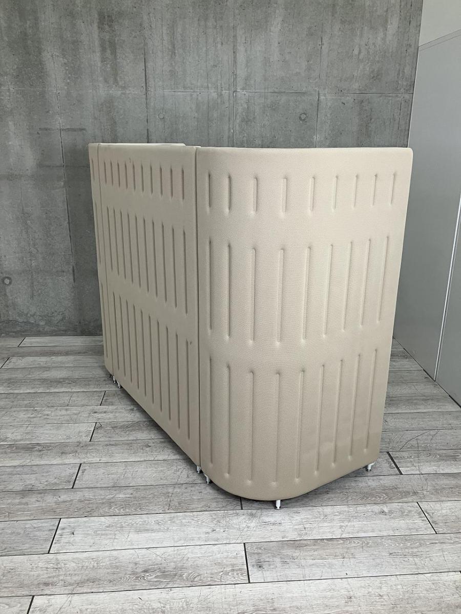 【パーテーション付の3人掛けソファ!人目を気にせずオフィス空間・休憩ルームに!】■オカムラ製 マッフル 3人掛けソファ ■ベージュ 【ABW商材】【関東倉庫在庫品】【弊社使用欄:A00996796】♢- 全店共通商品