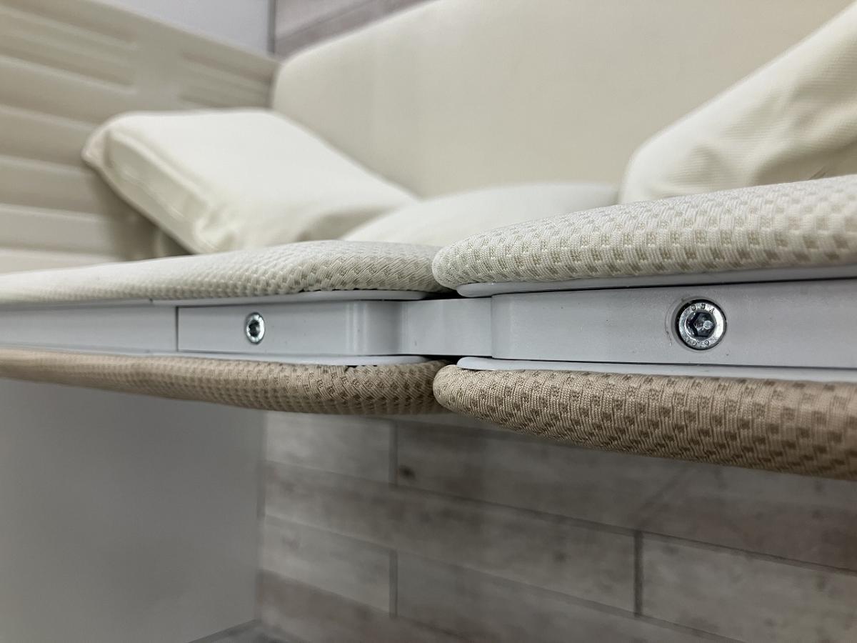 - あり黄ばみ・変色が広い範囲にうっすらある、または濃い黄ばみ・変色が一部ある。(例:三人用ソファ、二人用ソファ、一人用ソファの場合、背もたれ、肘かけ、座面等、 センターテーブルの場合、天板、脚にある。)