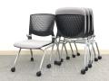 キャスター付きで軽快に水平移動できる4本脚タイプで、座を跳ね上げることにより平行にネスティングが可能です。