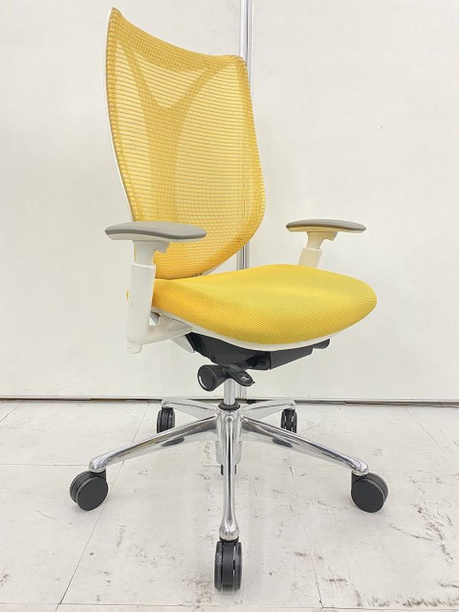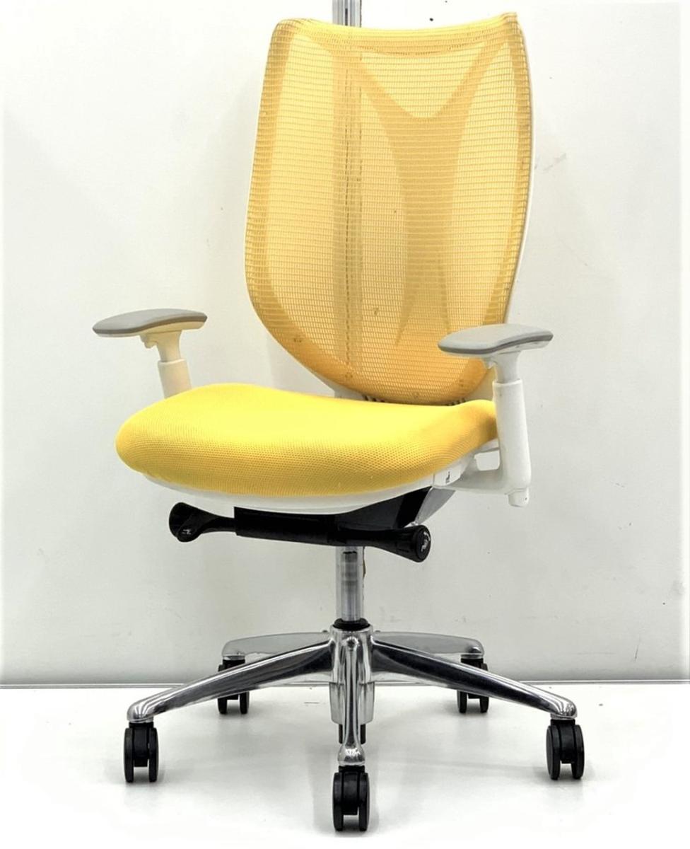 【在庫入替セール品】【しなやかな座り心地!】【ハイバック】【レアカラー】■オカムラ製 サブリナチェア マンゴーイエロー ■アジャストアーム付 ホワイトボディ- 日本橋店