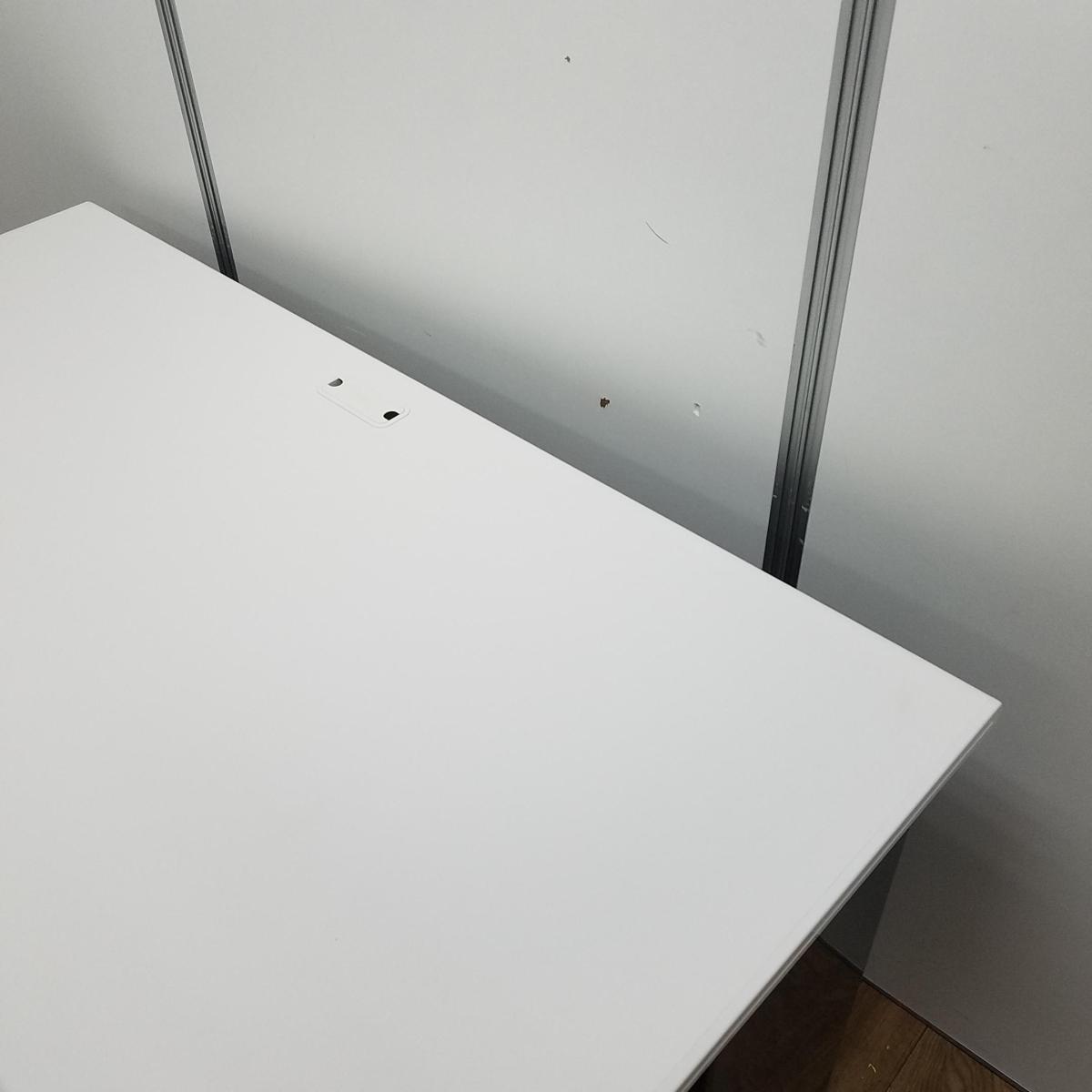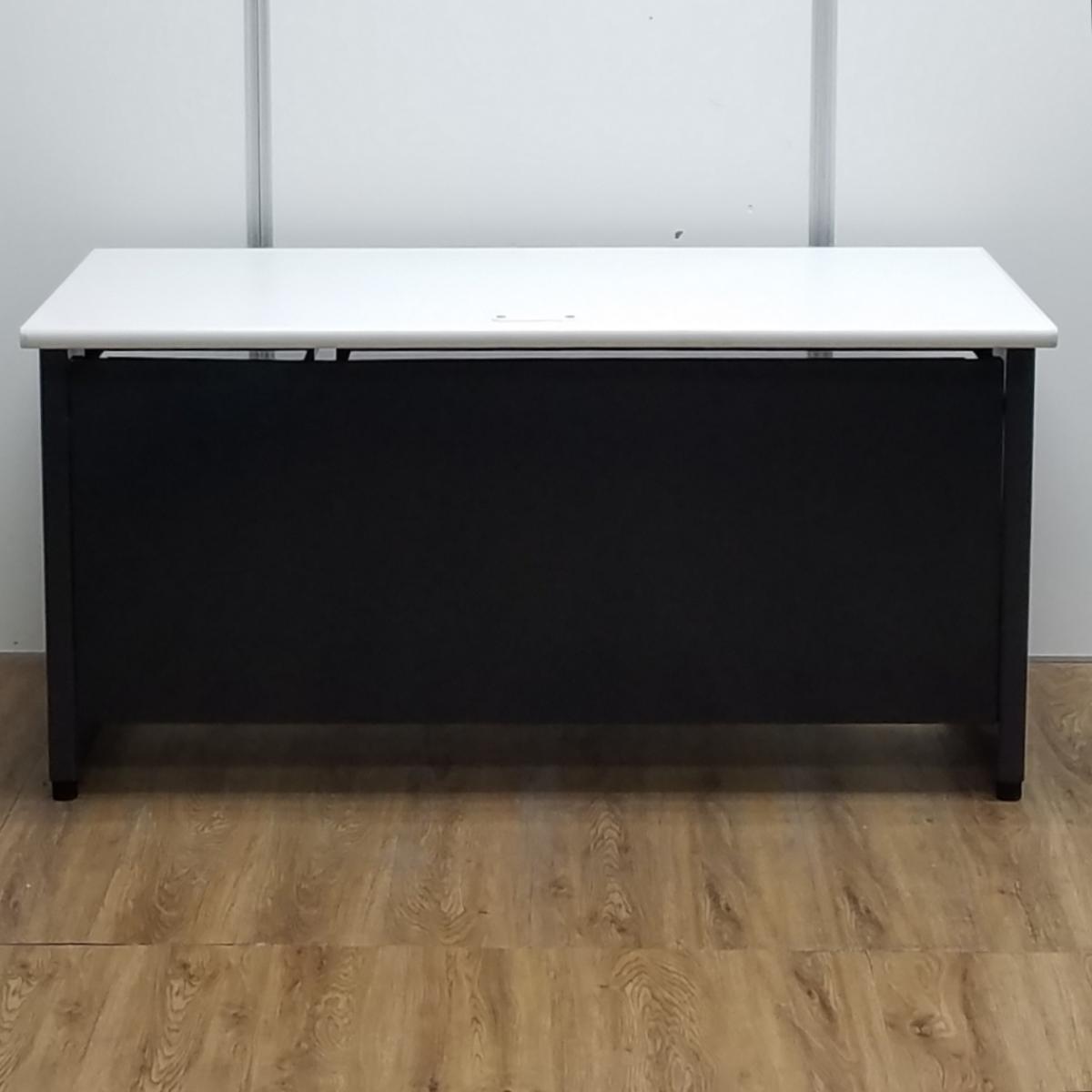 【商品入替のため、残り9台限り】プラス製 フラットラインシリーズ ホワイト 珍しいブラックフレーム ホワイト天板とブラック脚のコントラストがオシャレ! 広々使えるW1400サイズ W1400平机!!- 京都東寺店