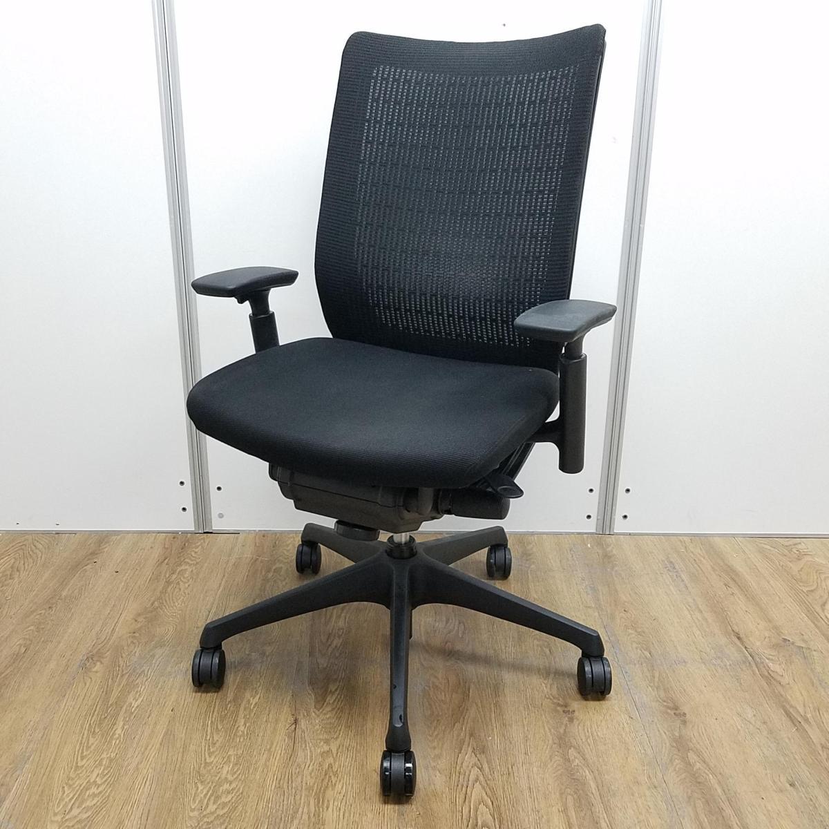 【商品入替のため、残り1脚限り】オカムラ製 ヴィスコンテシリーズ ブラック ハイバック アジャストアーム※可動肘 背面メッシュ その快適さにリピーター続出! 肘付きハイバックチェア!!サーキュラーバリューCO2削減量の算出について