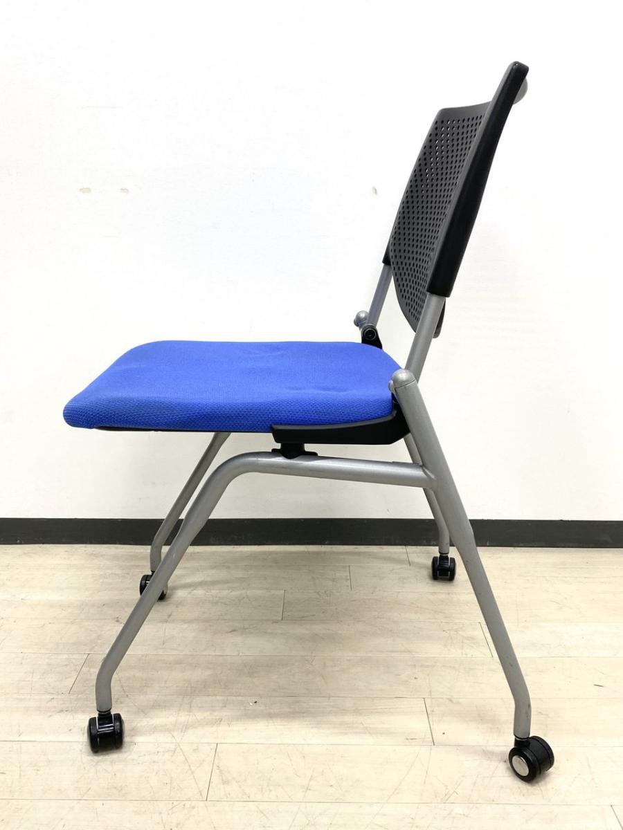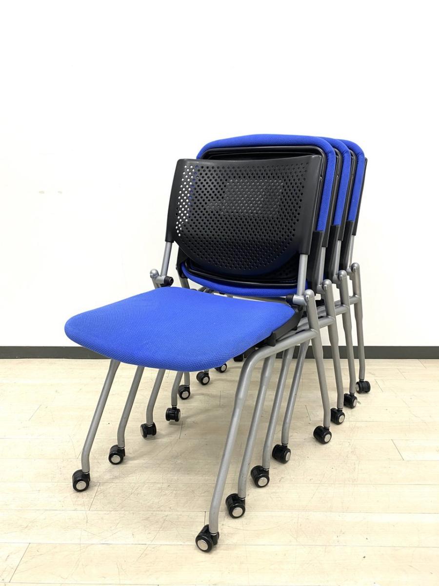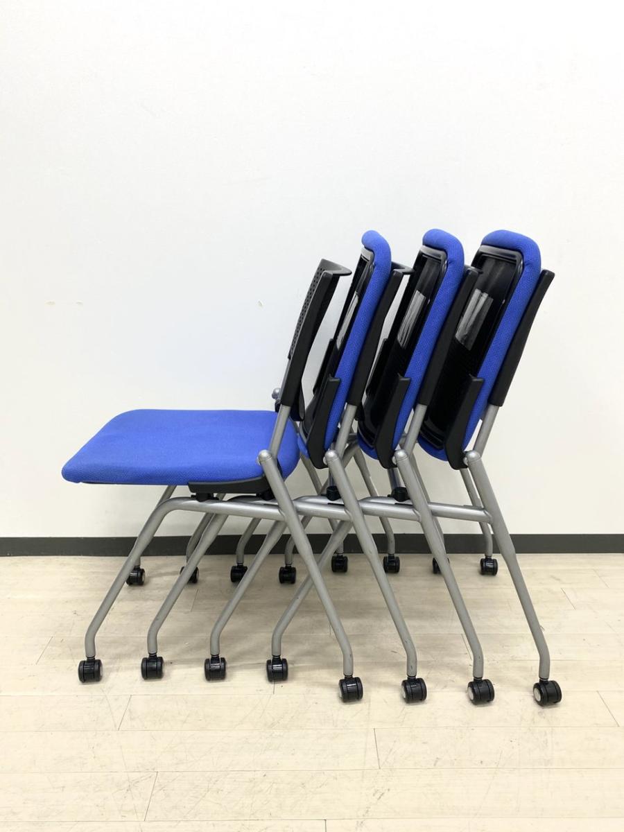 【4脚セット品!】平行方向へ重ねることができるネスティングチェア!使わないときはまとめて収納できる優れもの!会議室におすすめ! ■オカムラ/プロスタック/ブルー- 立川・八王子店